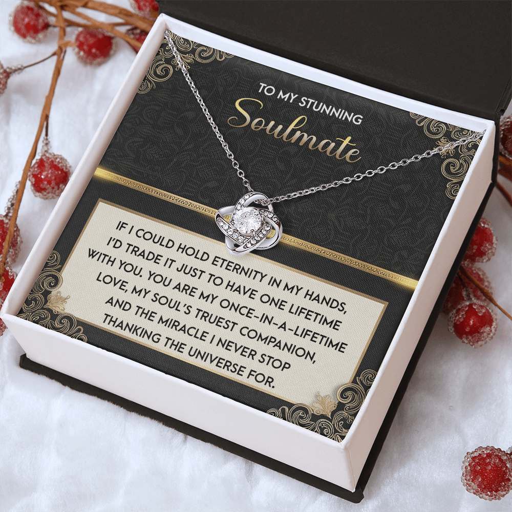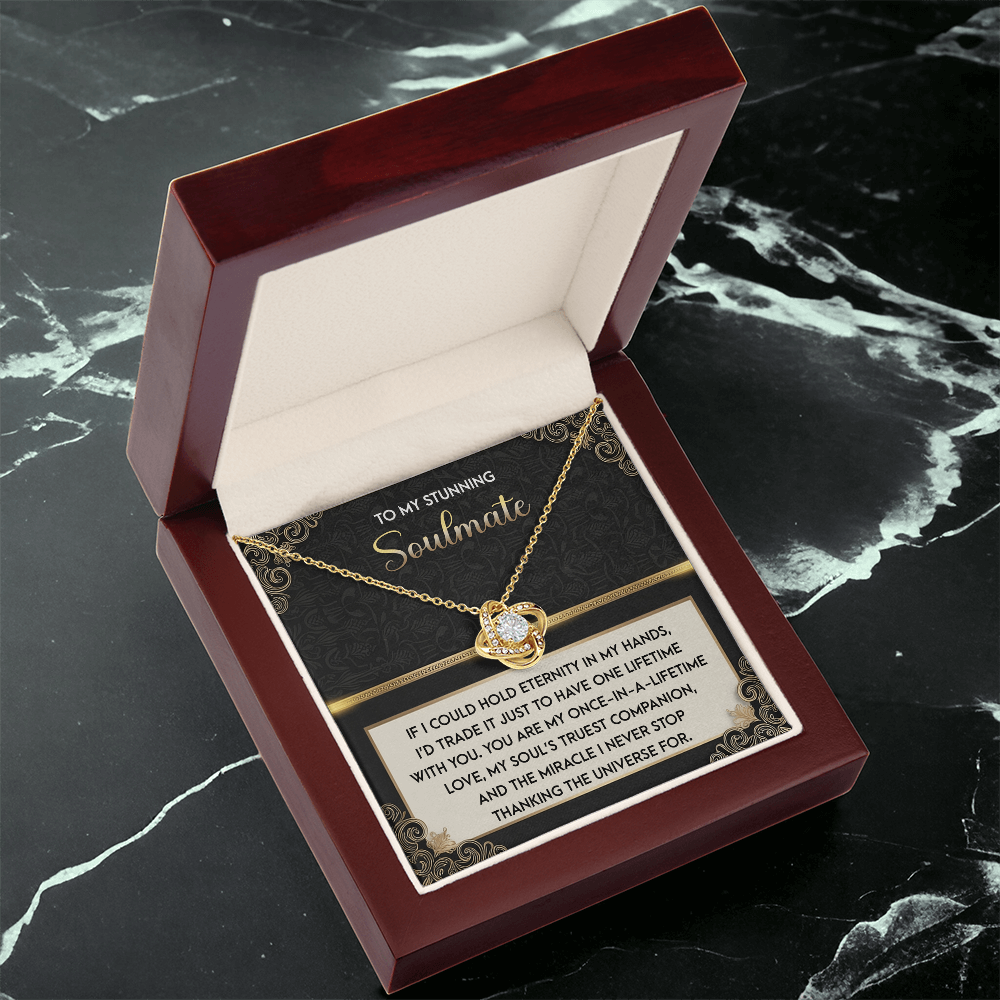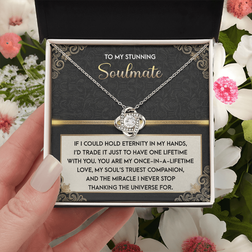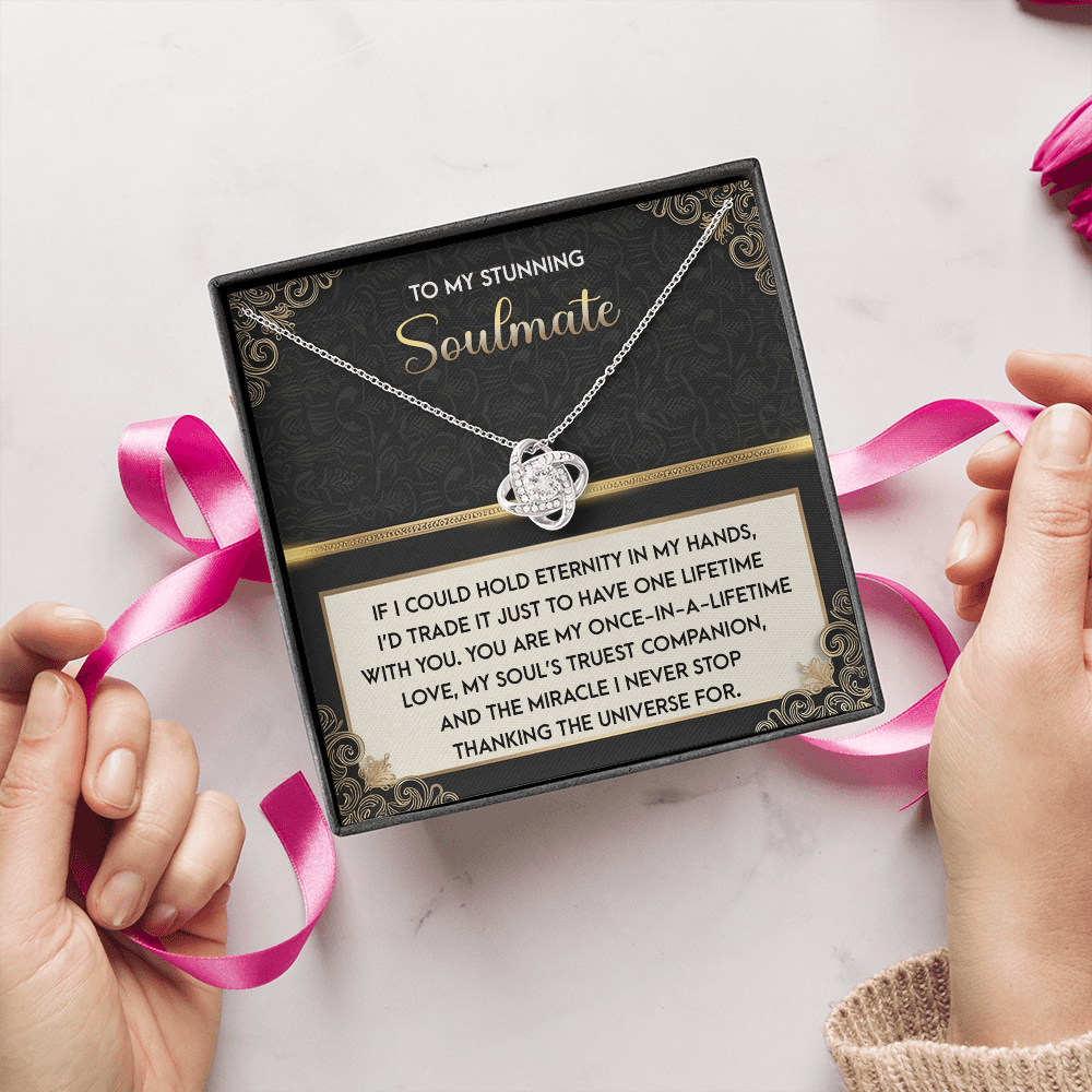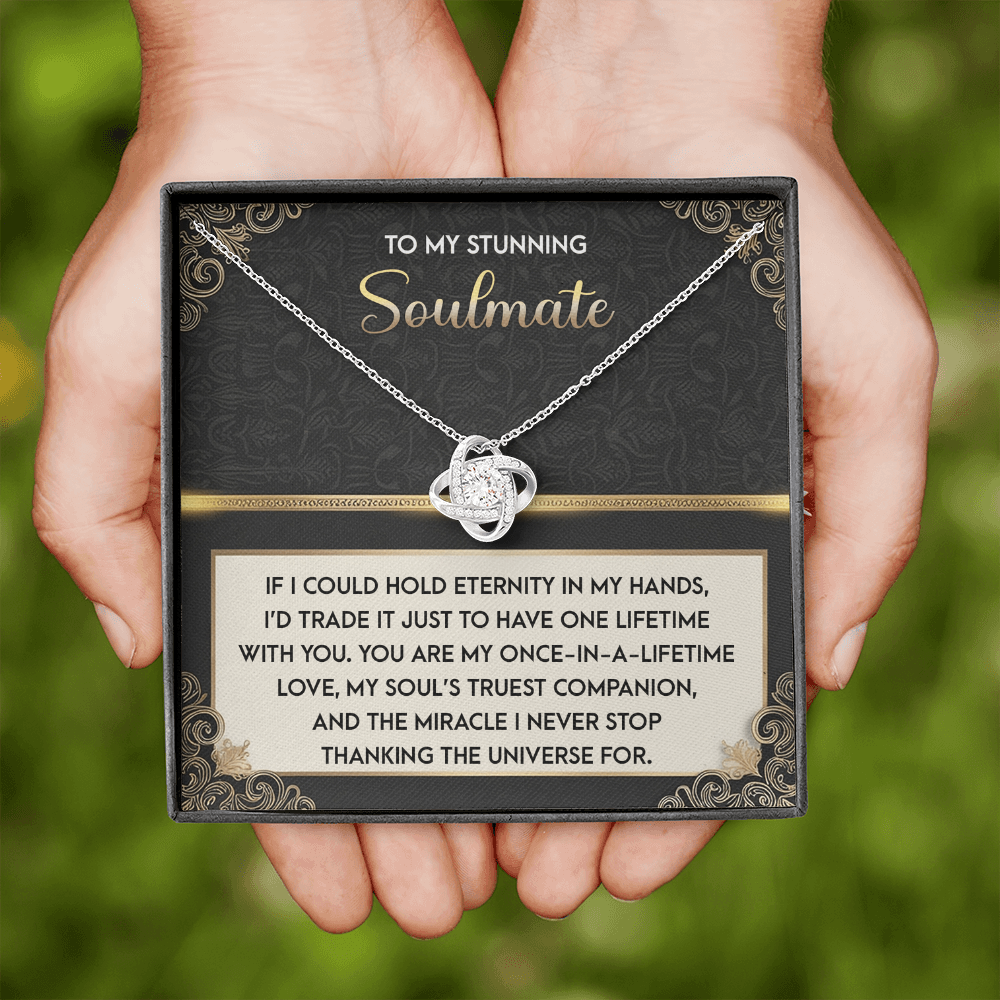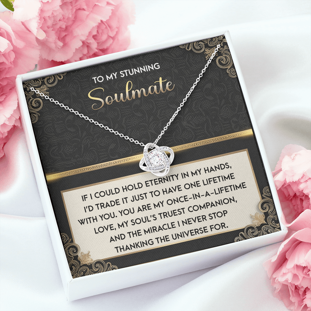 My Stunning Soulmate - If I Could Hold Eternity In My Hands - I'd Trade It To Have One Lifetime With You - My Soul's Truest Companion - Miracle I Never Stop Thanking The Universe - Love Knot Necklace LN, SMT0000108LN