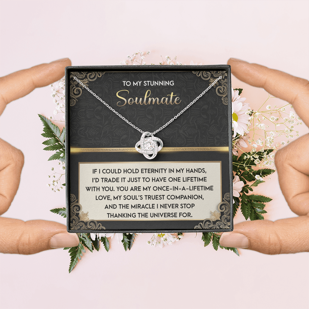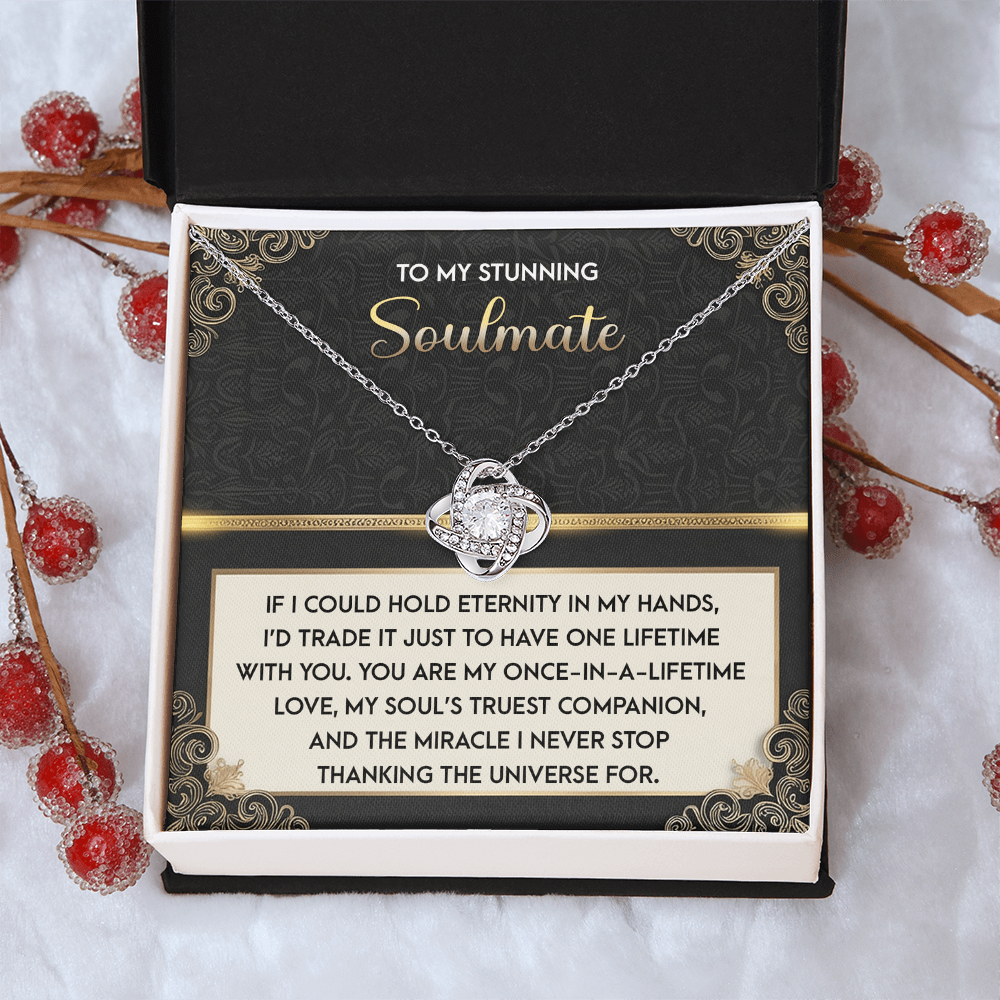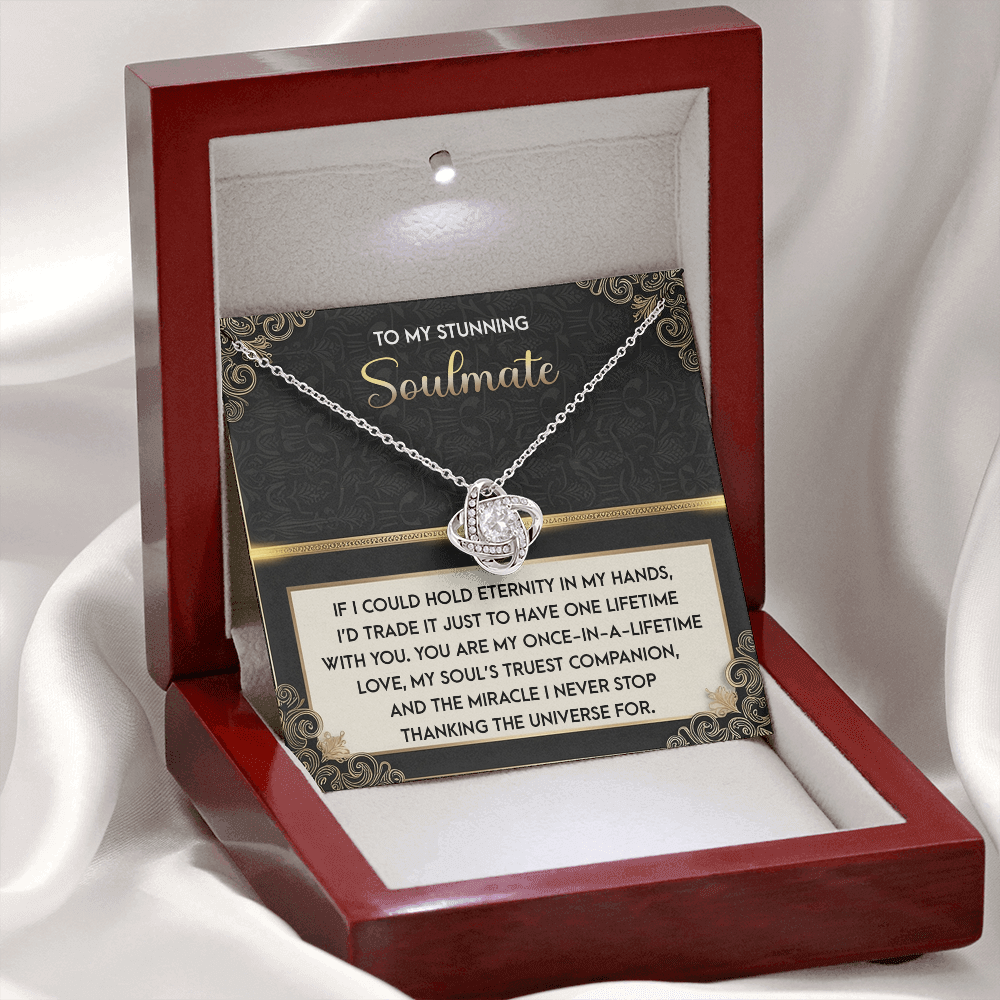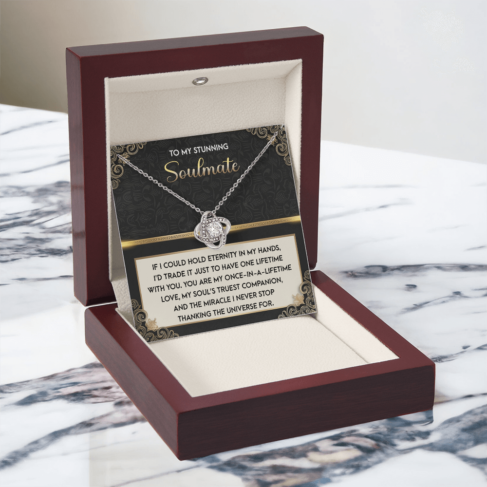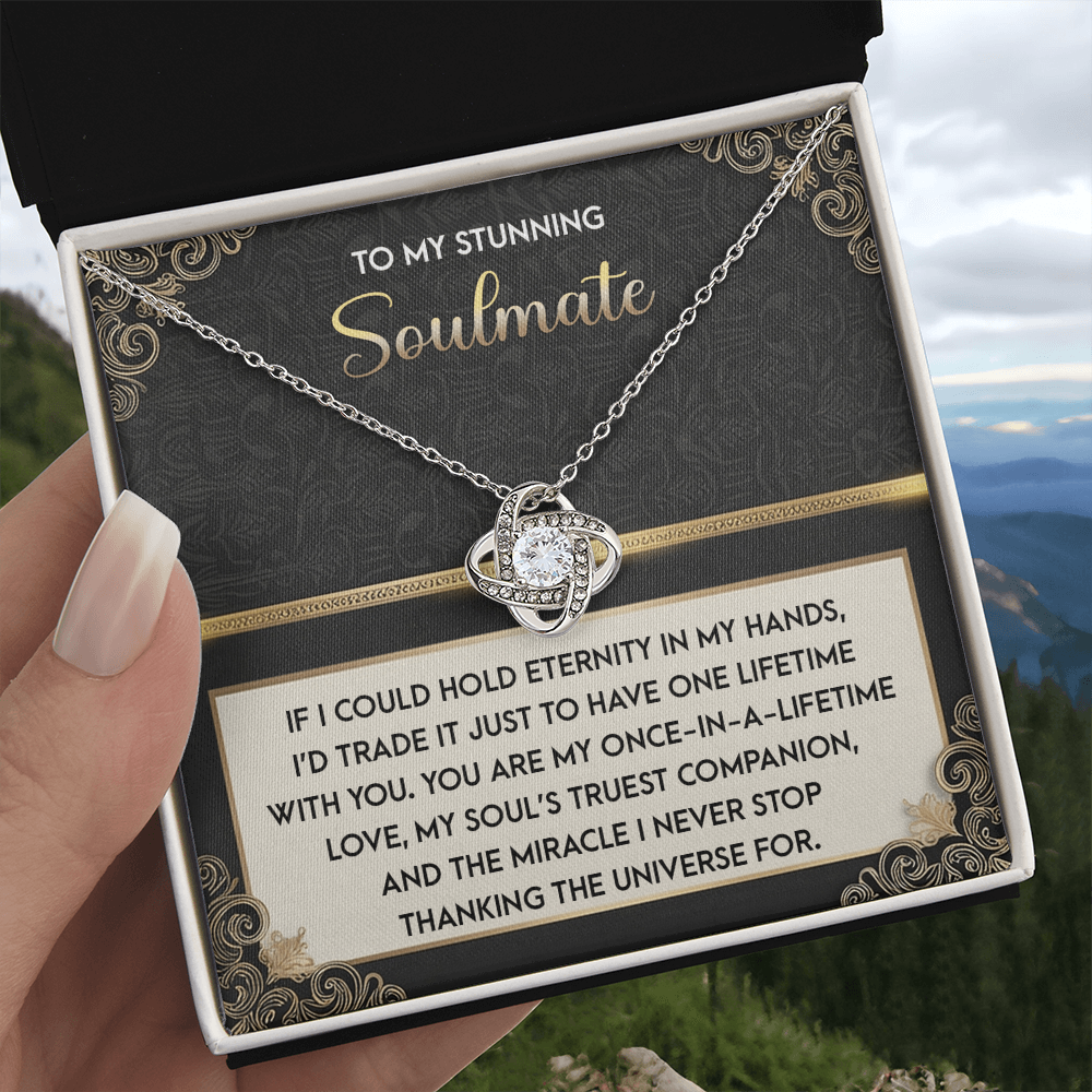 My Stunning Soulmate - If I Could Hold Eternity In My Hands - I'd Trade It To Have One Lifetime With You - My Soul's Truest Companion - Miracle I Never Stop Thanking The Universe - Love Knot Necklace LN, SMT0000108LN