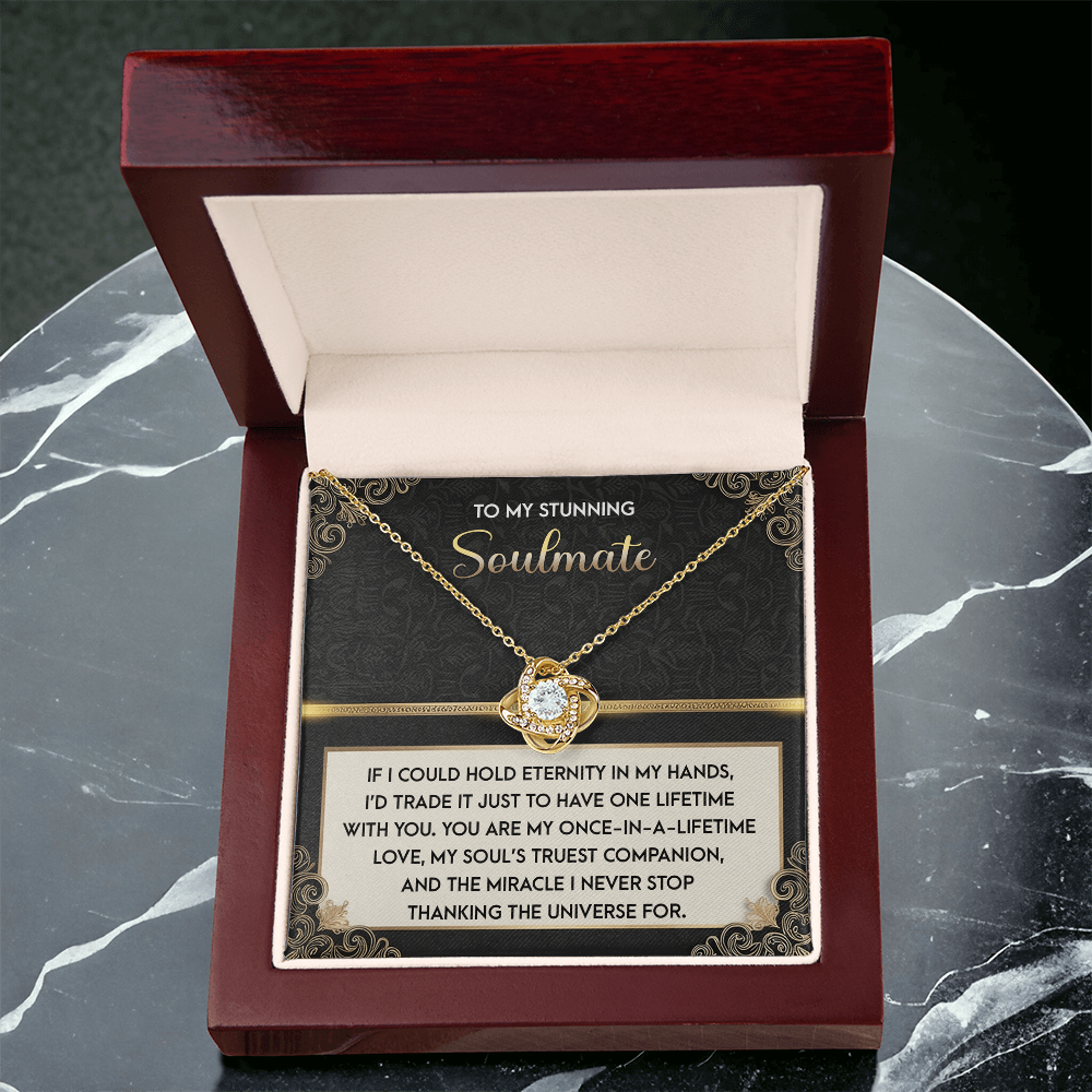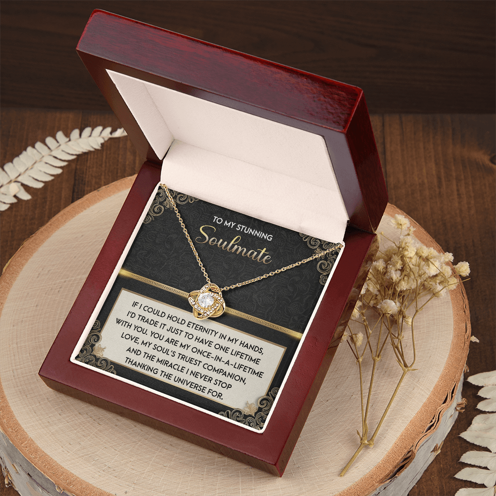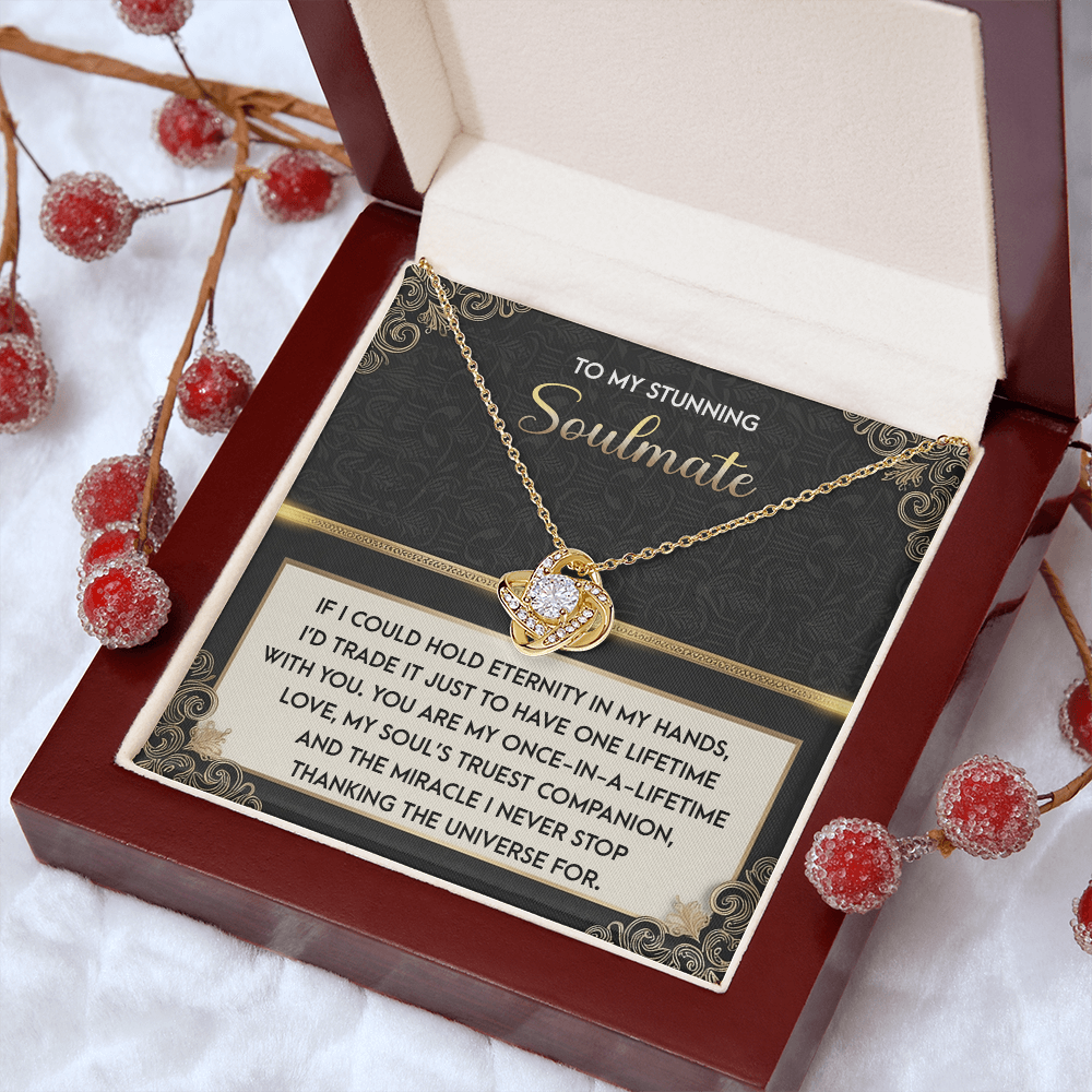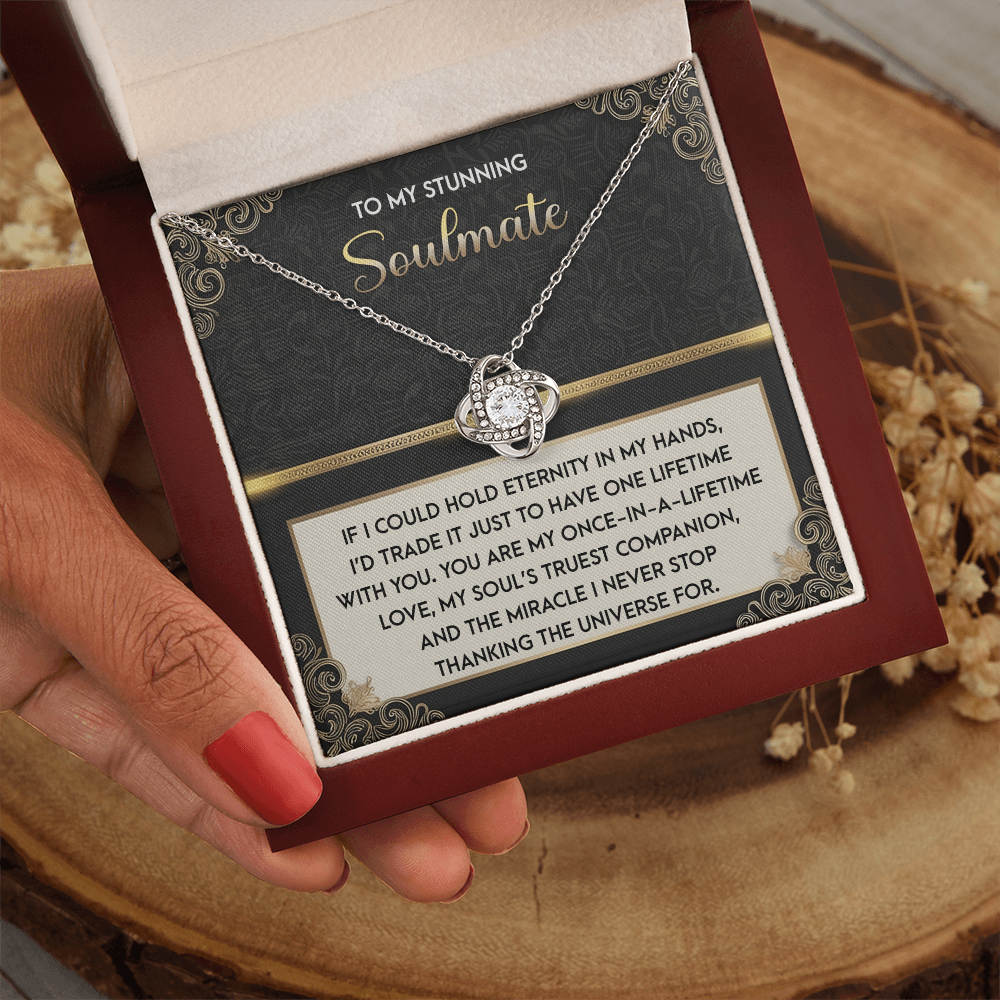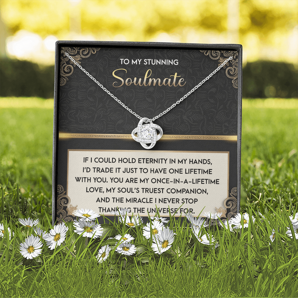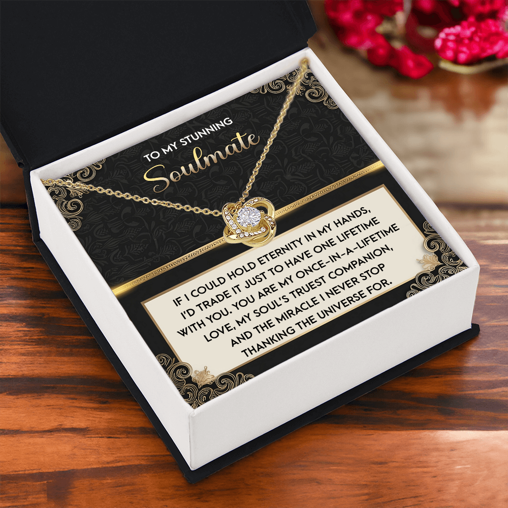 My Stunning Soulmate - If I Could Hold Eternity In My Hands - I'd Trade It To Have One Lifetime With You - My Soul's Truest Companion - Miracle I Never Stop Thanking The Universe - Love Knot Necklace LN, SMT0000108LN