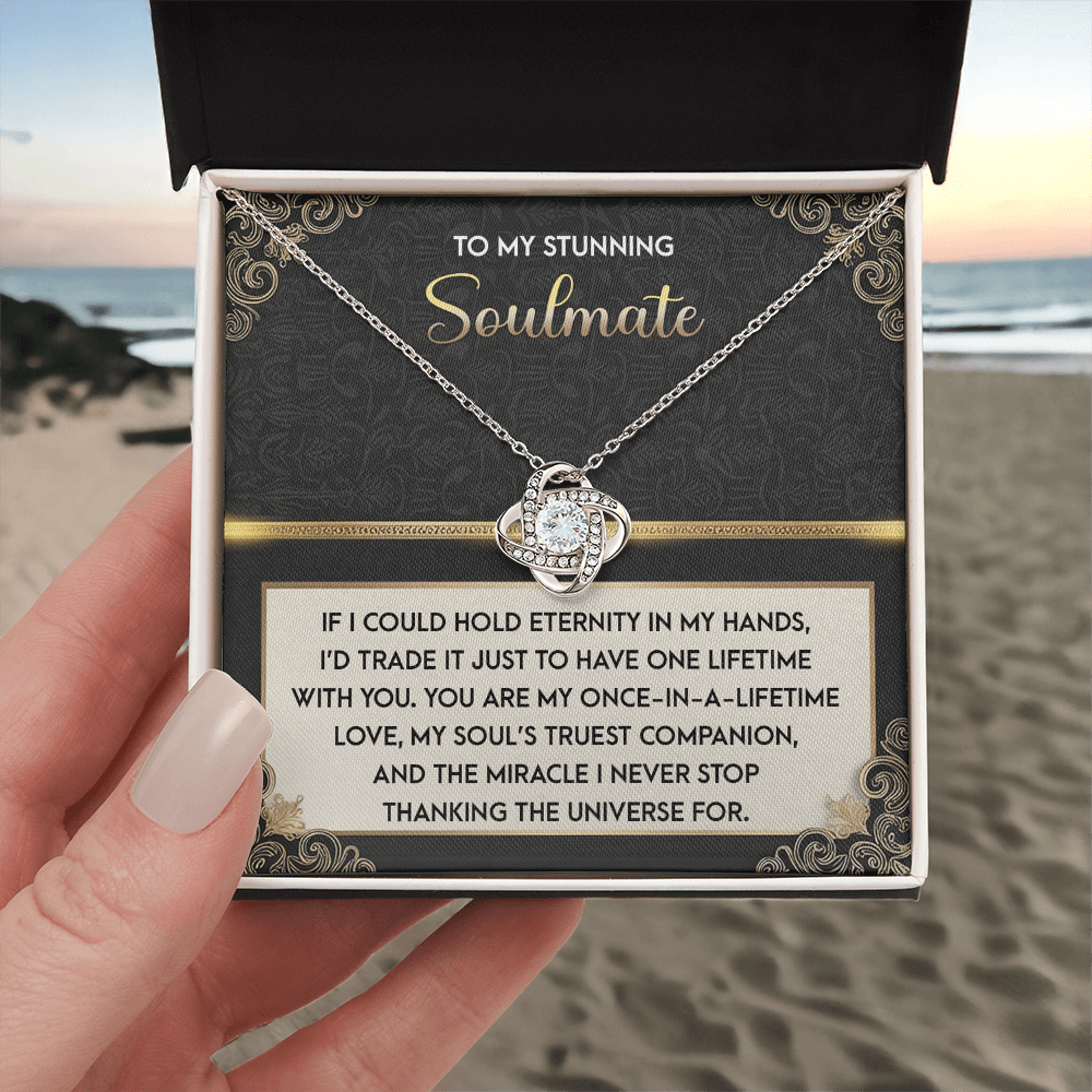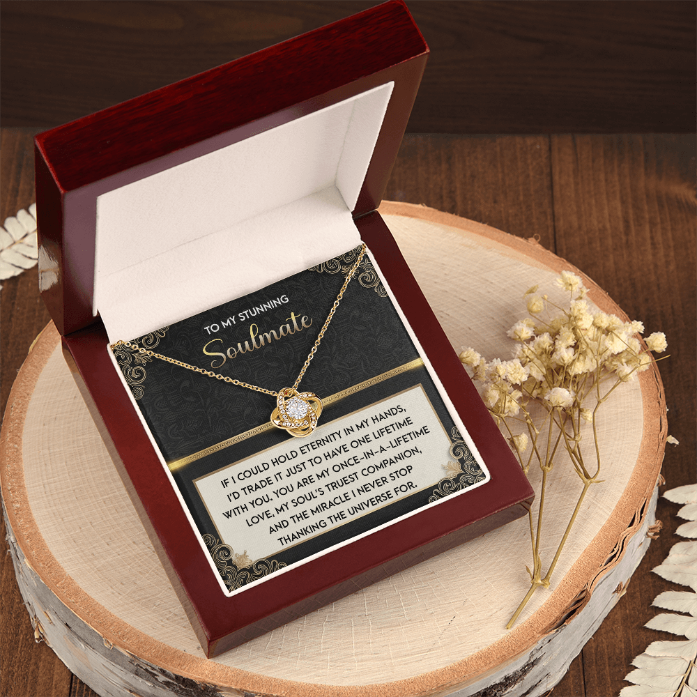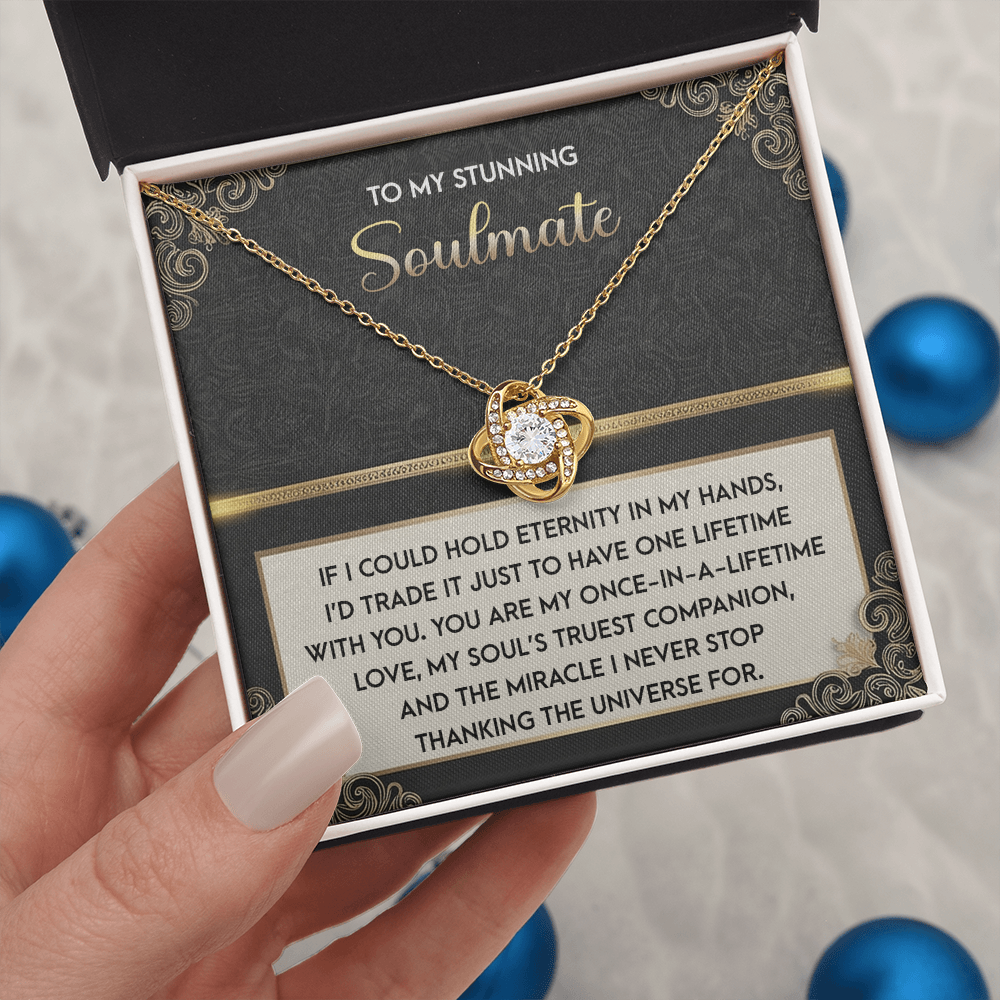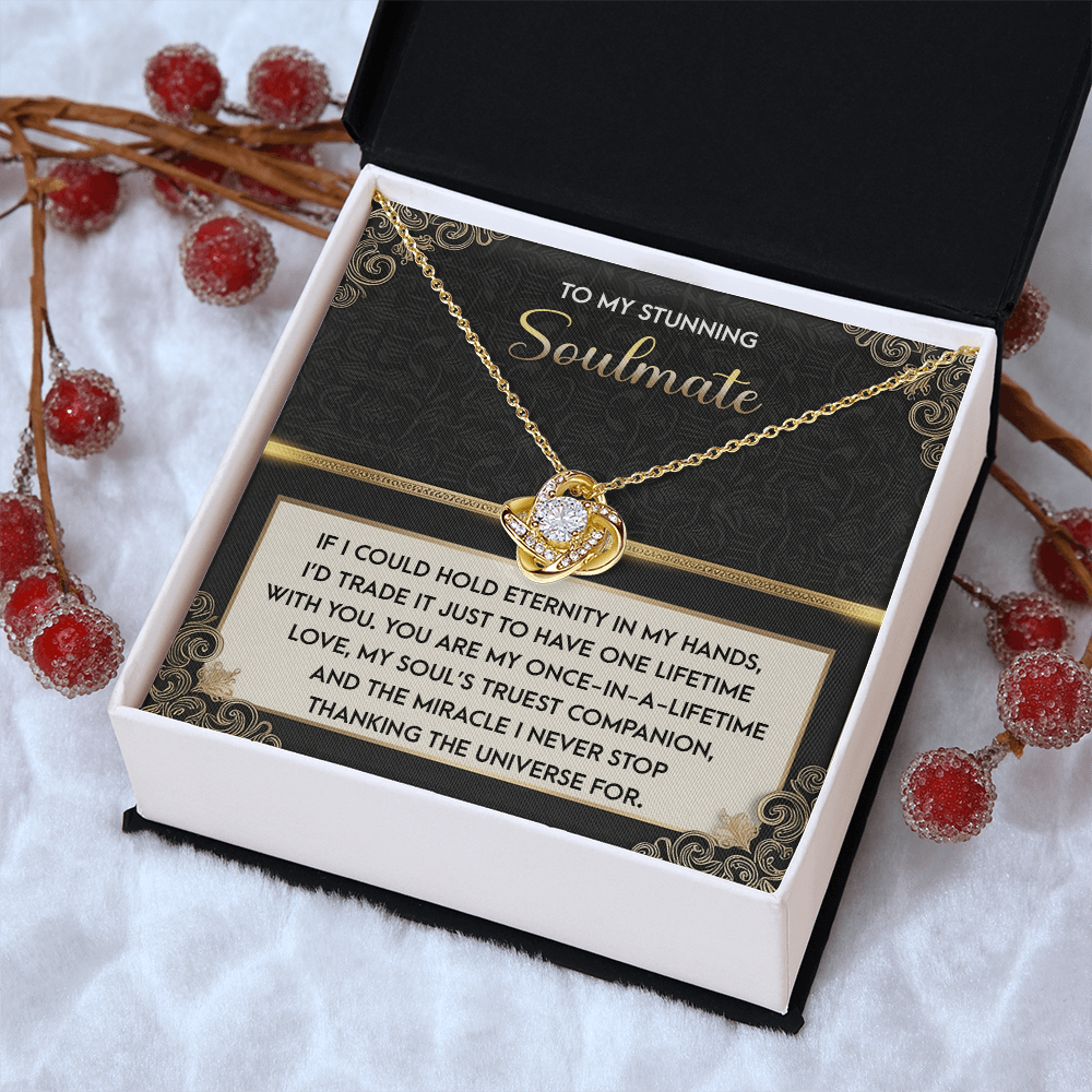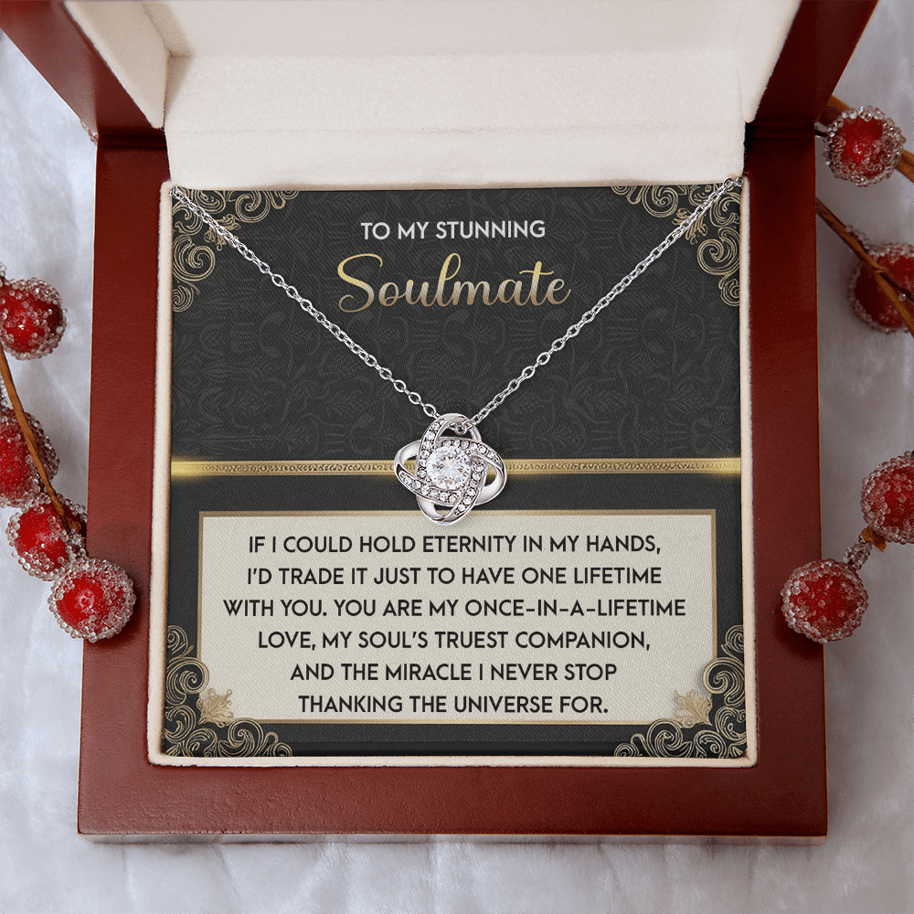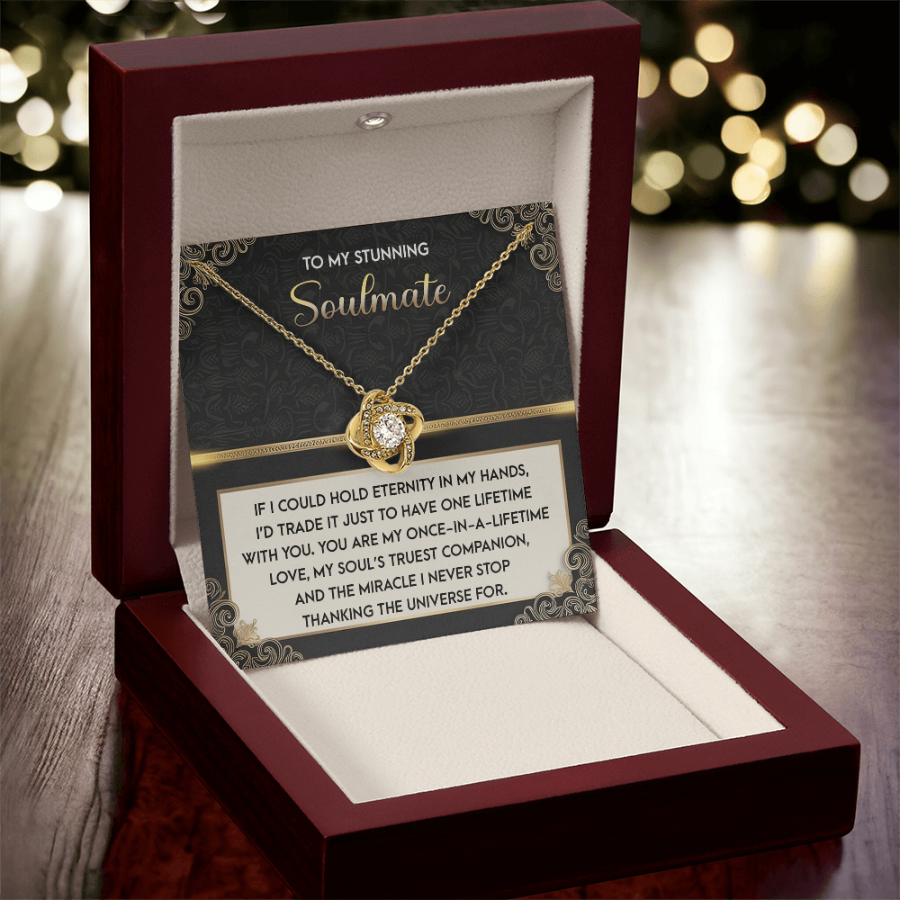 My Stunning Soulmate - If I Could Hold Eternity In My Hands - I'd Trade It To Have One Lifetime With You - My Soul's Truest Companion - Miracle I Never Stop Thanking The Universe - Love Knot Necklace LN, SMT0000108LN