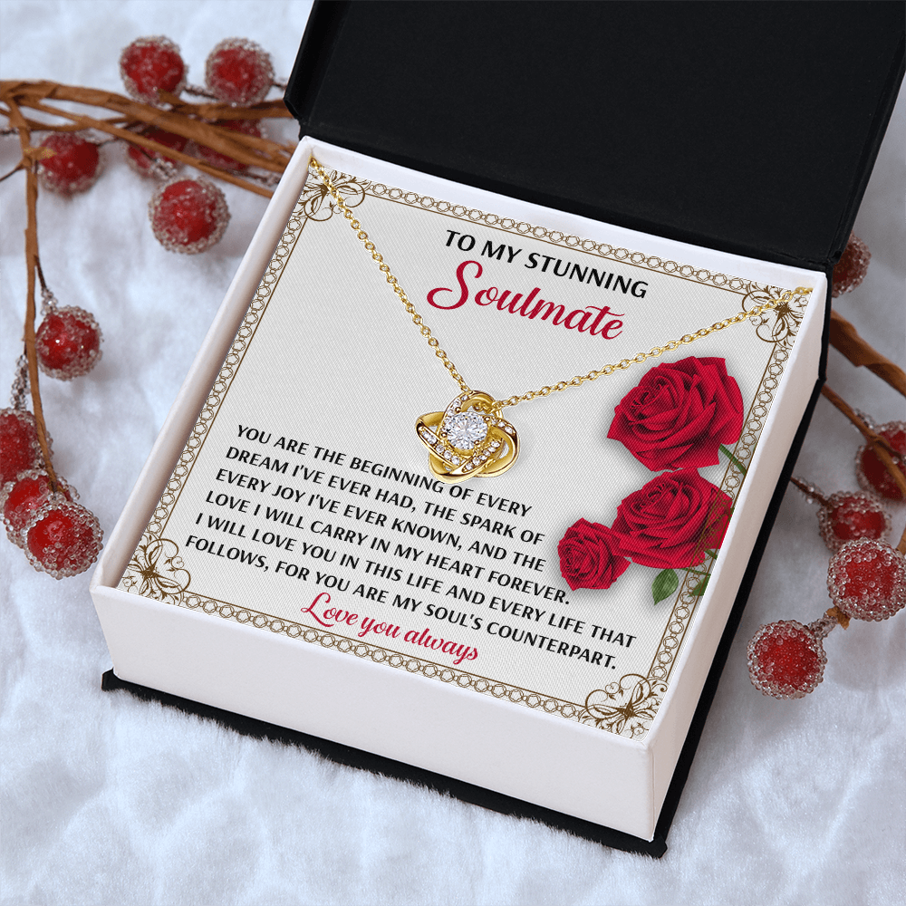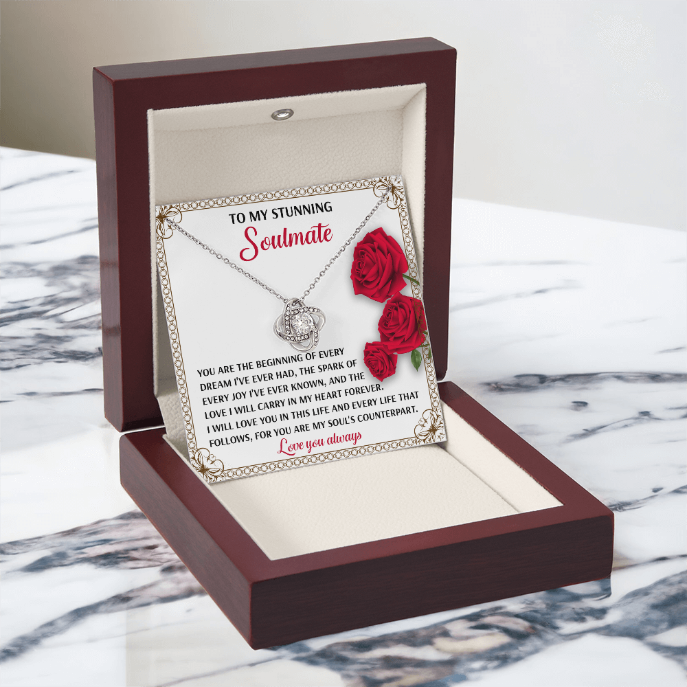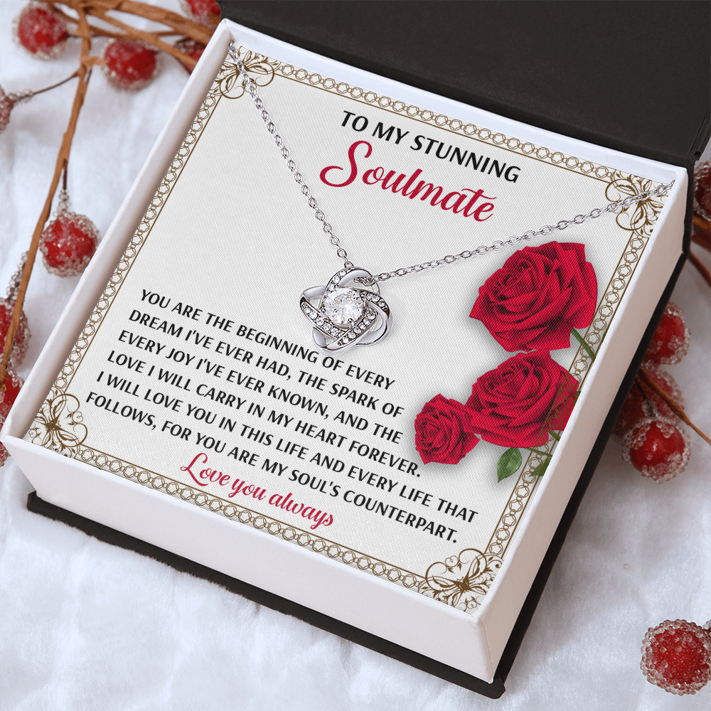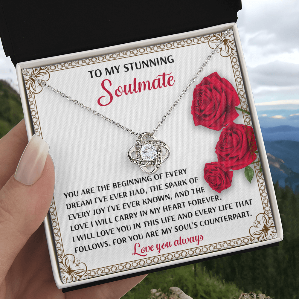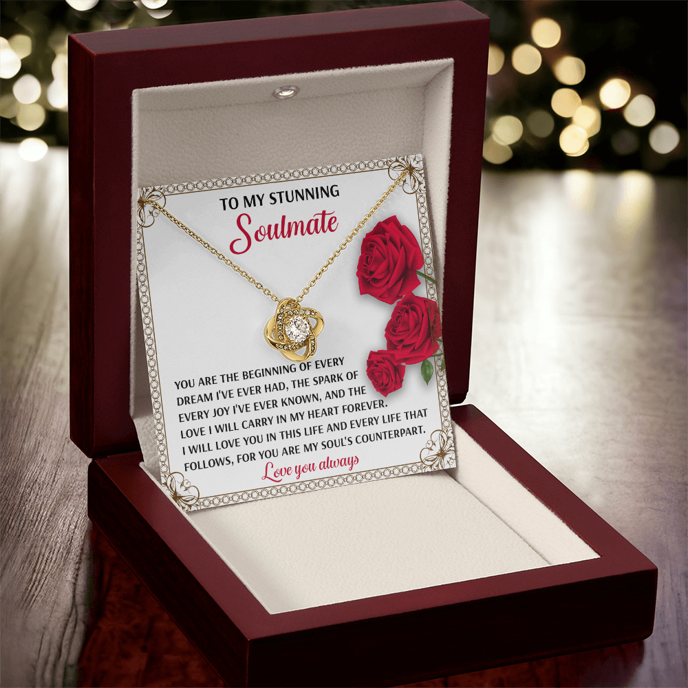 My Stunning Soulmate - The Beginning Of Every Dream - The Spark Of Every Joy - Love I Will Carry In My Heart Forever - Love You In This Life And Every Life That Follows - Love Knot Necklace LN, SMT0000105LN