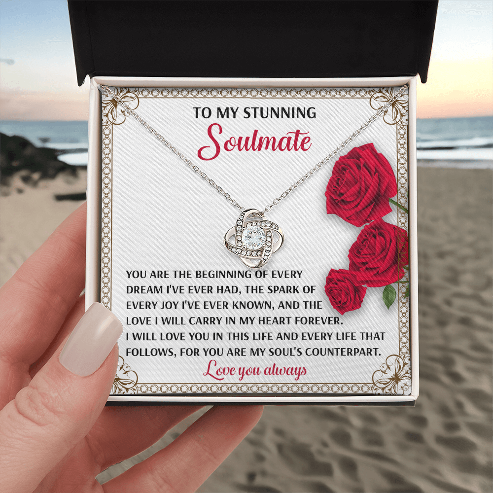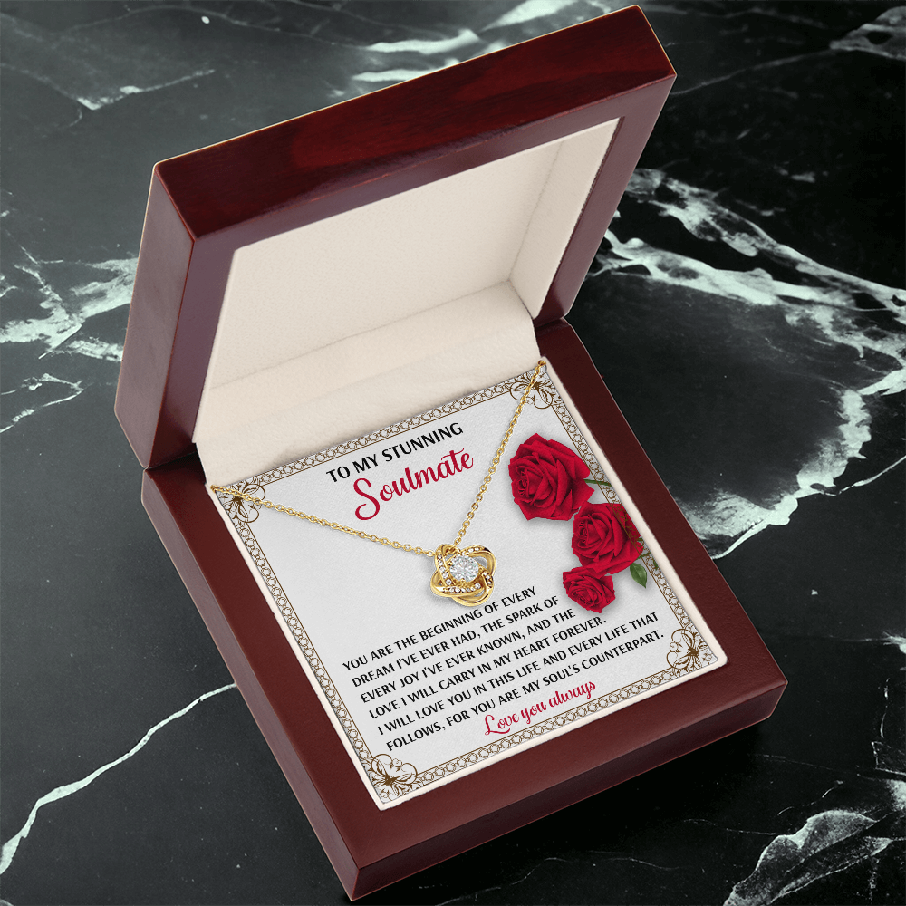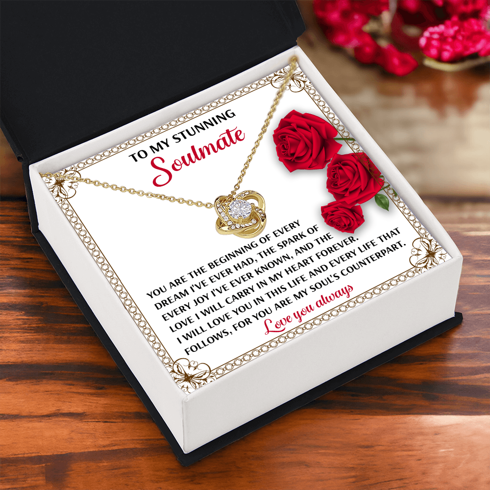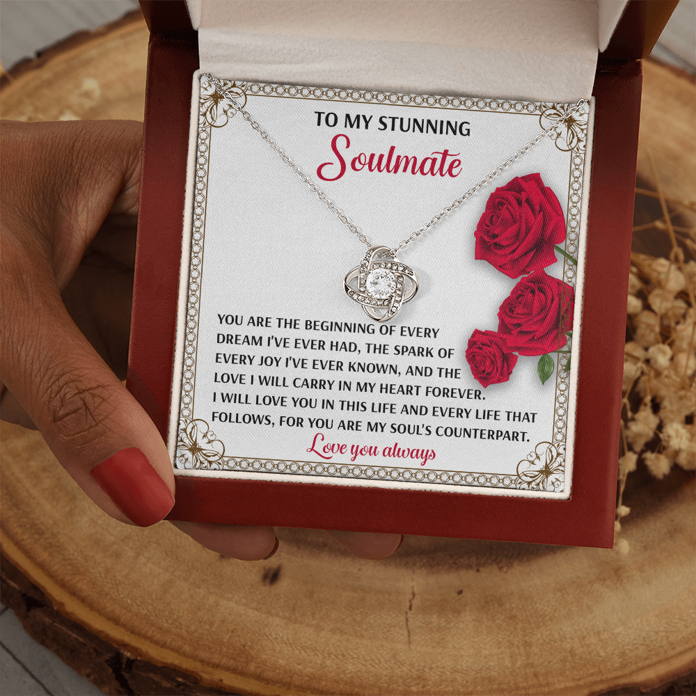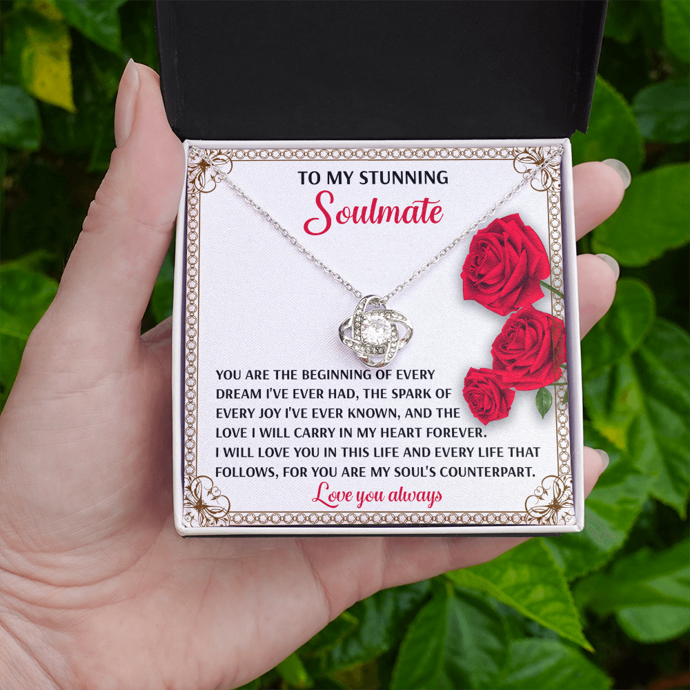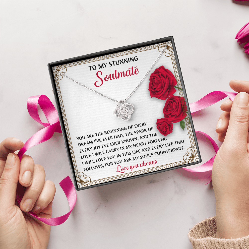 My Stunning Soulmate - The Beginning Of Every Dream - The Spark Of Every Joy - Love I Will Carry In My Heart Forever - Love You In This Life And Every Life That Follows - Love Knot Necklace LN, SMT0000105LN