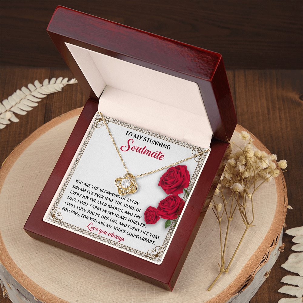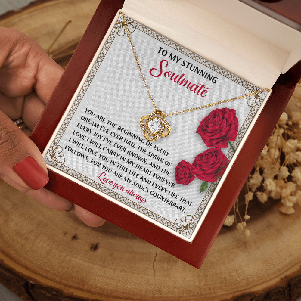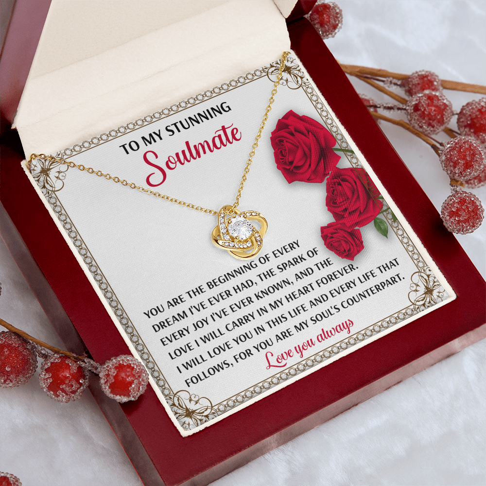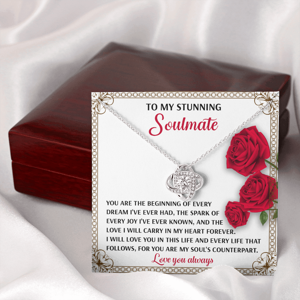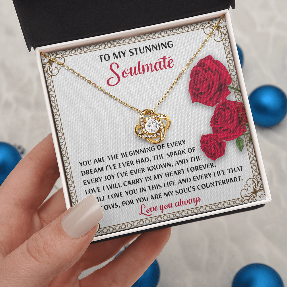 My Stunning Soulmate - The Beginning Of Every Dream - The Spark Of Every Joy - Love I Will Carry In My Heart Forever - Love You In This Life And Every Life That Follows - Love Knot Necklace LN, SMT0000105LN