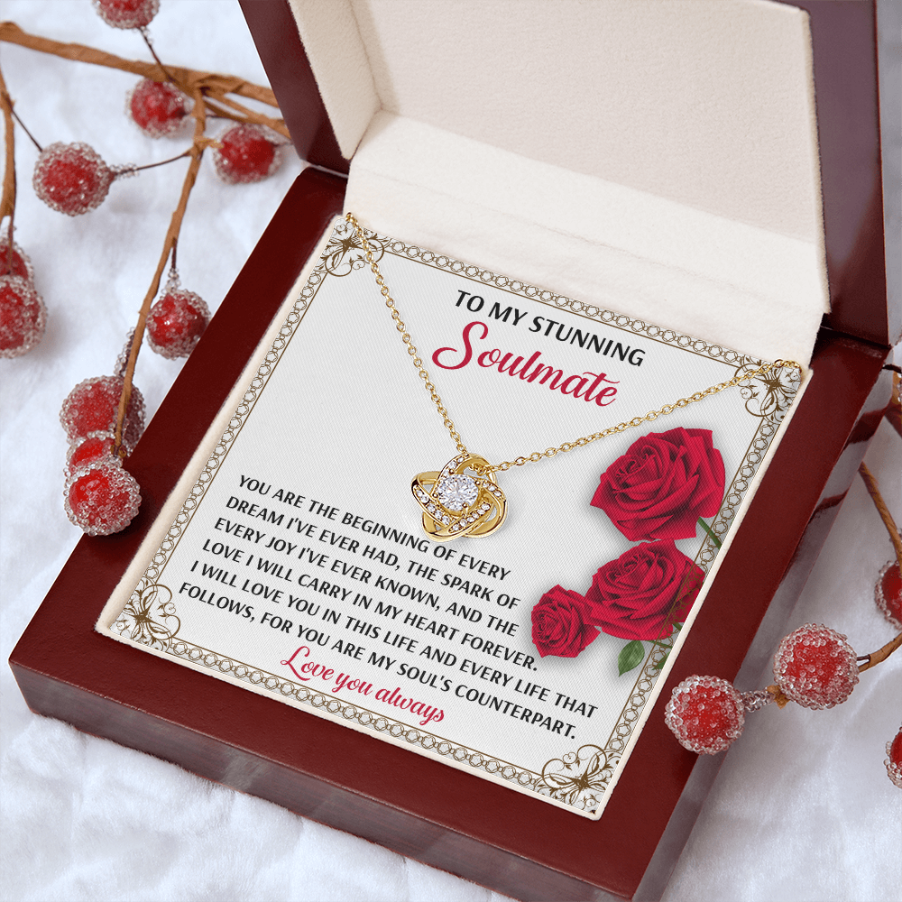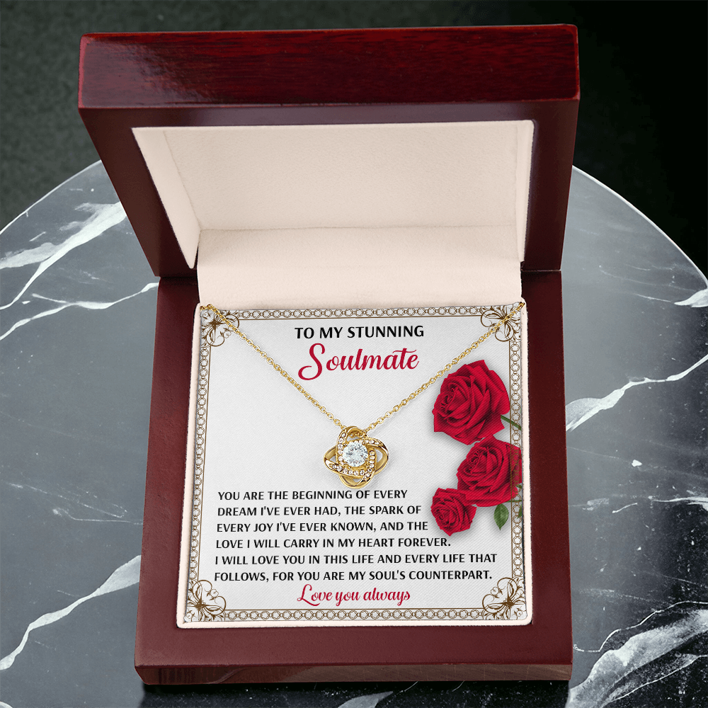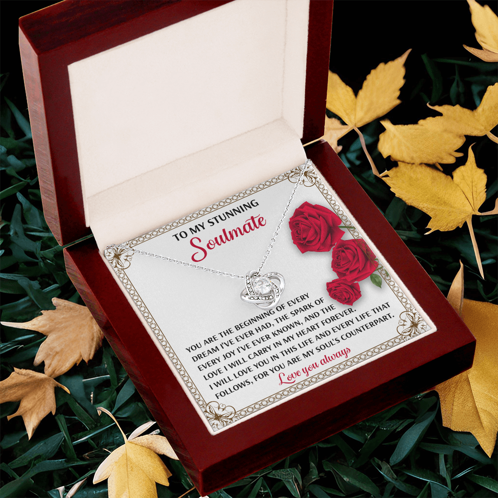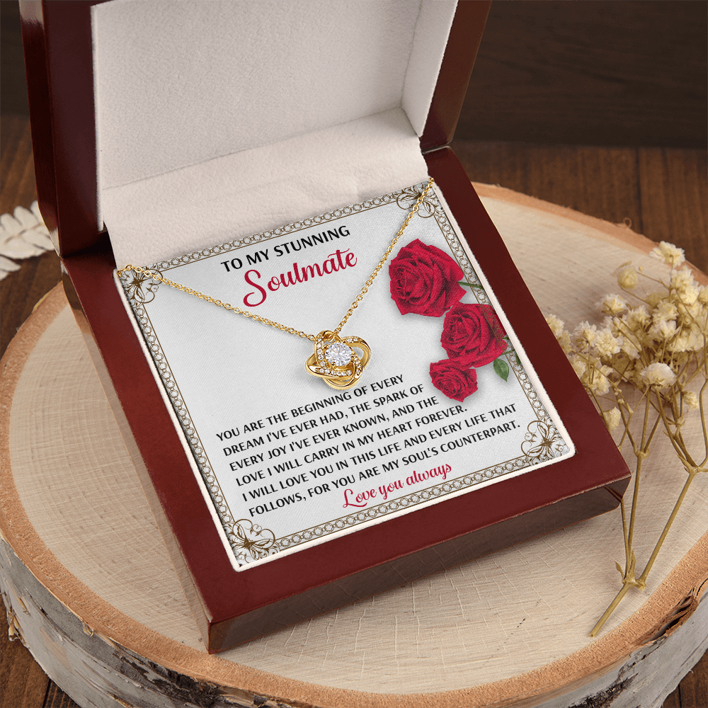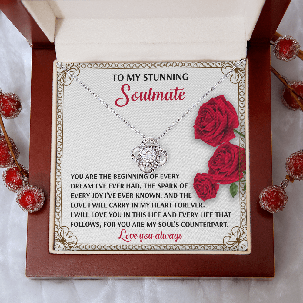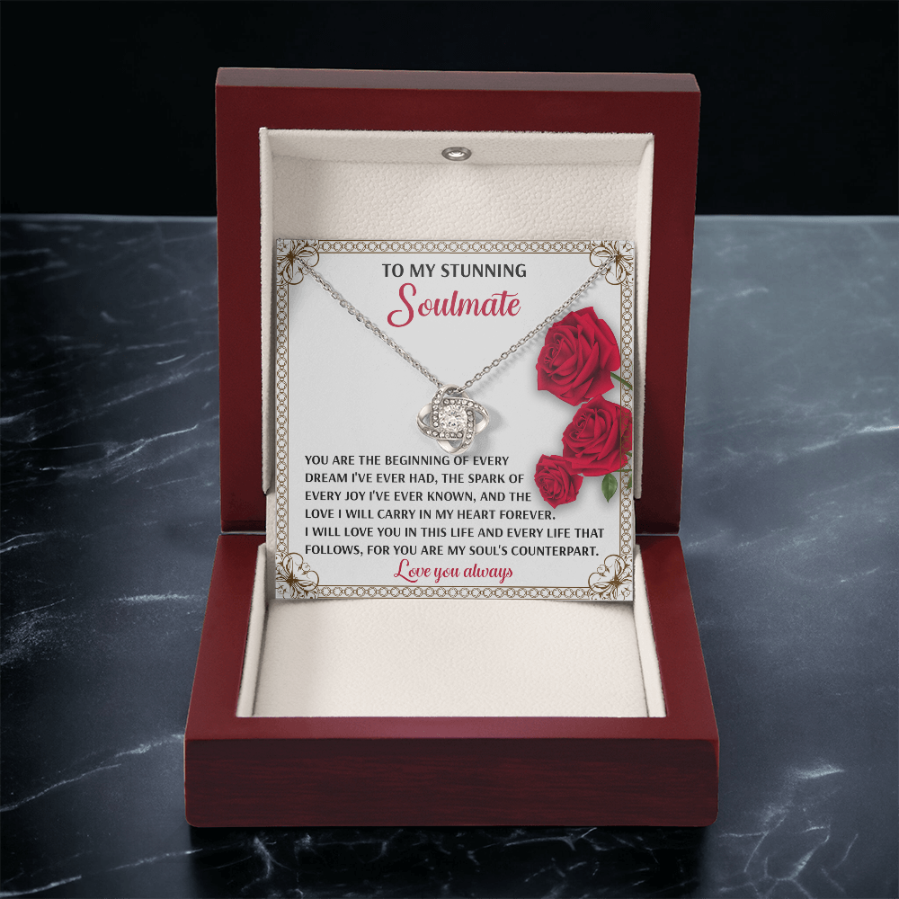 My Stunning Soulmate - The Beginning Of Every Dream - The Spark Of Every Joy - Love I Will Carry In My Heart Forever - Love You In This Life And Every Life That Follows - Love Knot Necklace LN, SMT0000105LN