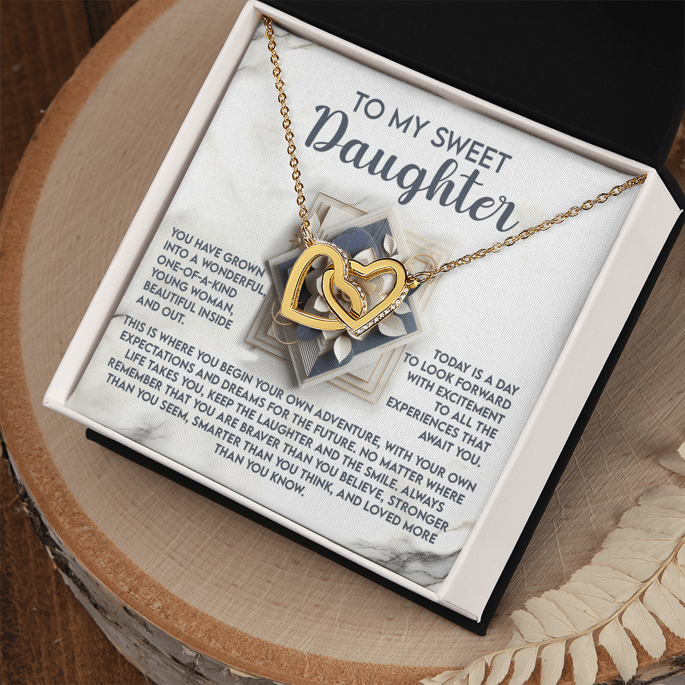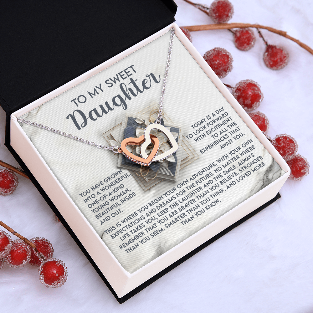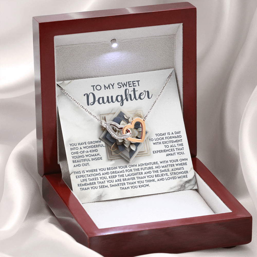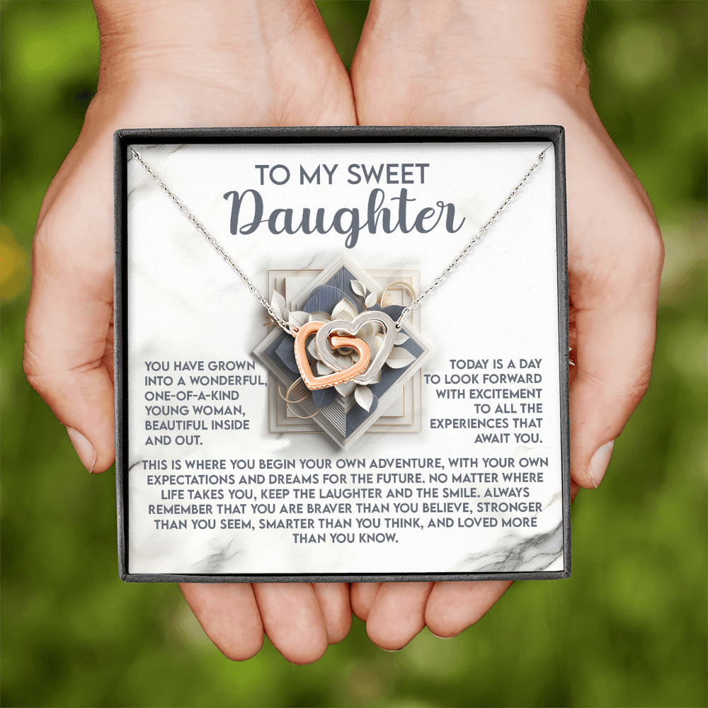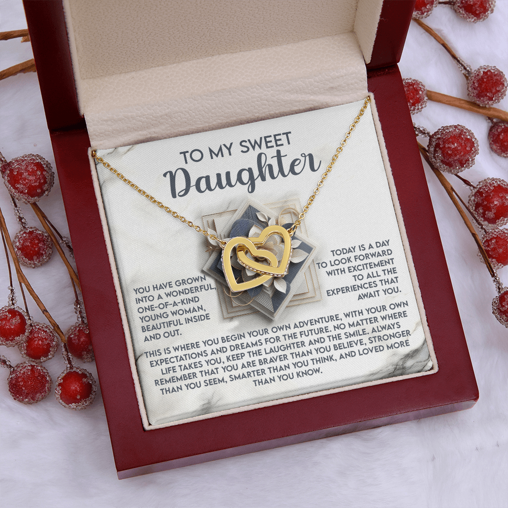My Sweet Daughter - Grown Into A Wonderful One-Of-A-Kind Young Woman - Beautiful Inside & Out - Begin Your Own Adventure - Your Own Expectations & Dreams For The Future - Interlocking Hearts Necklace IH, DAU0000116IH
