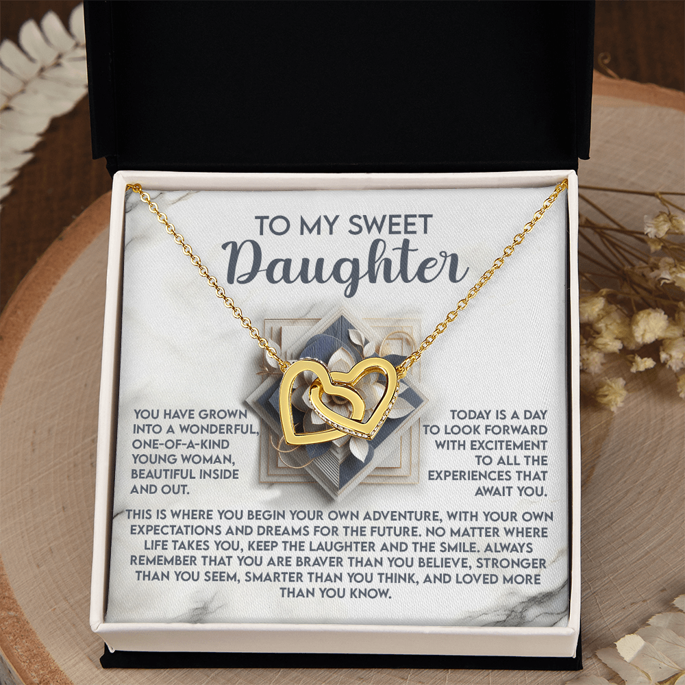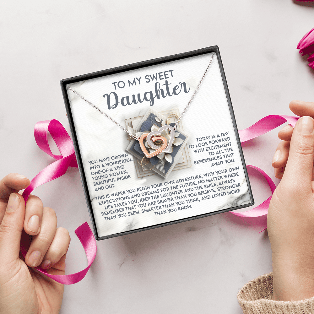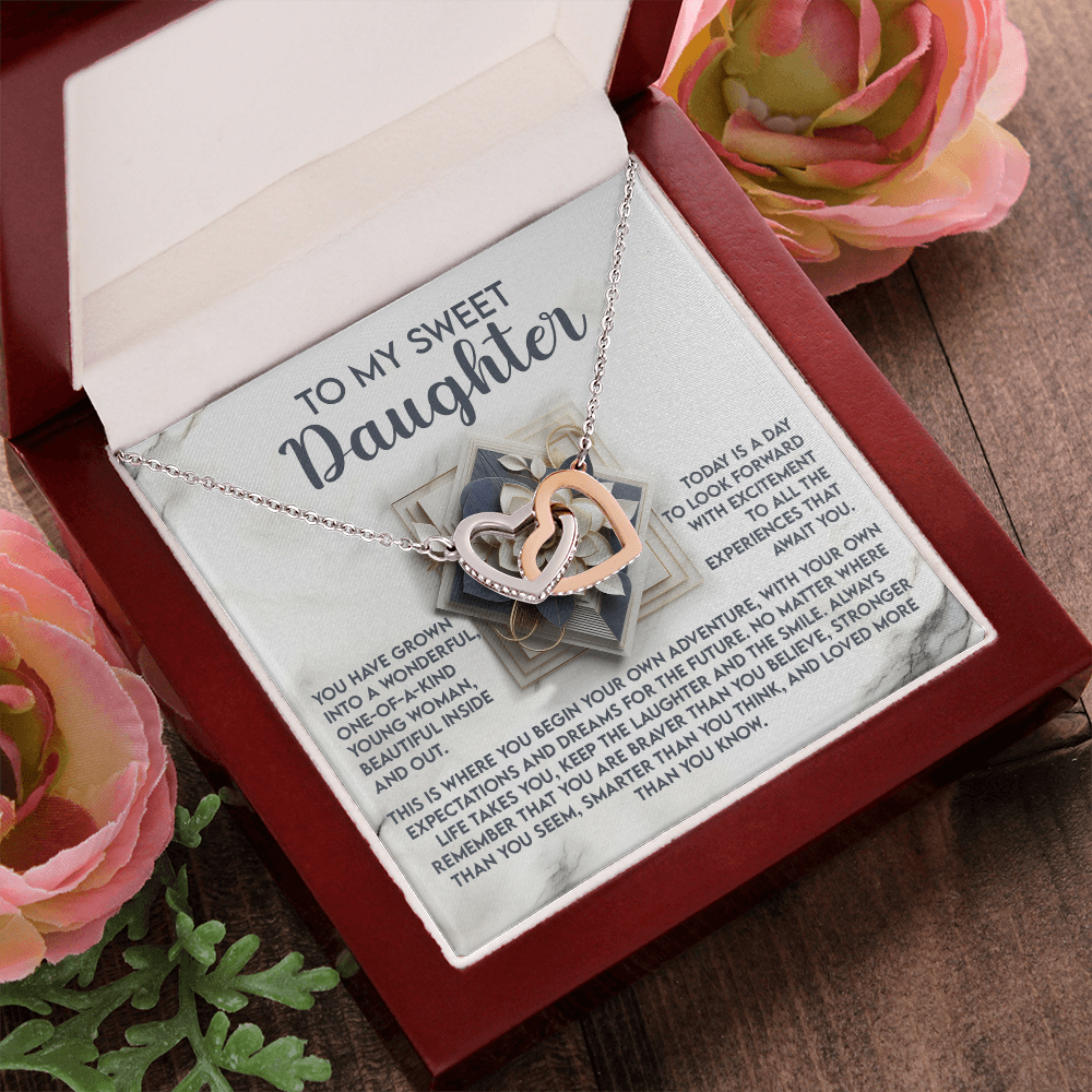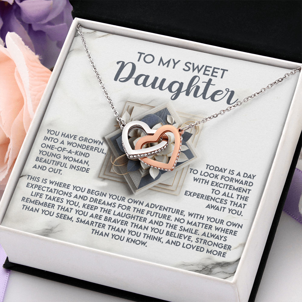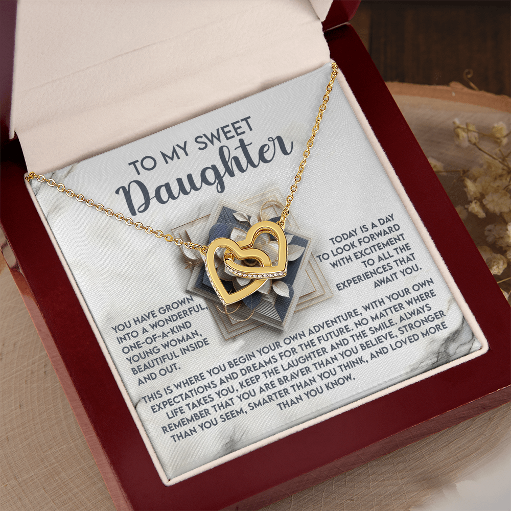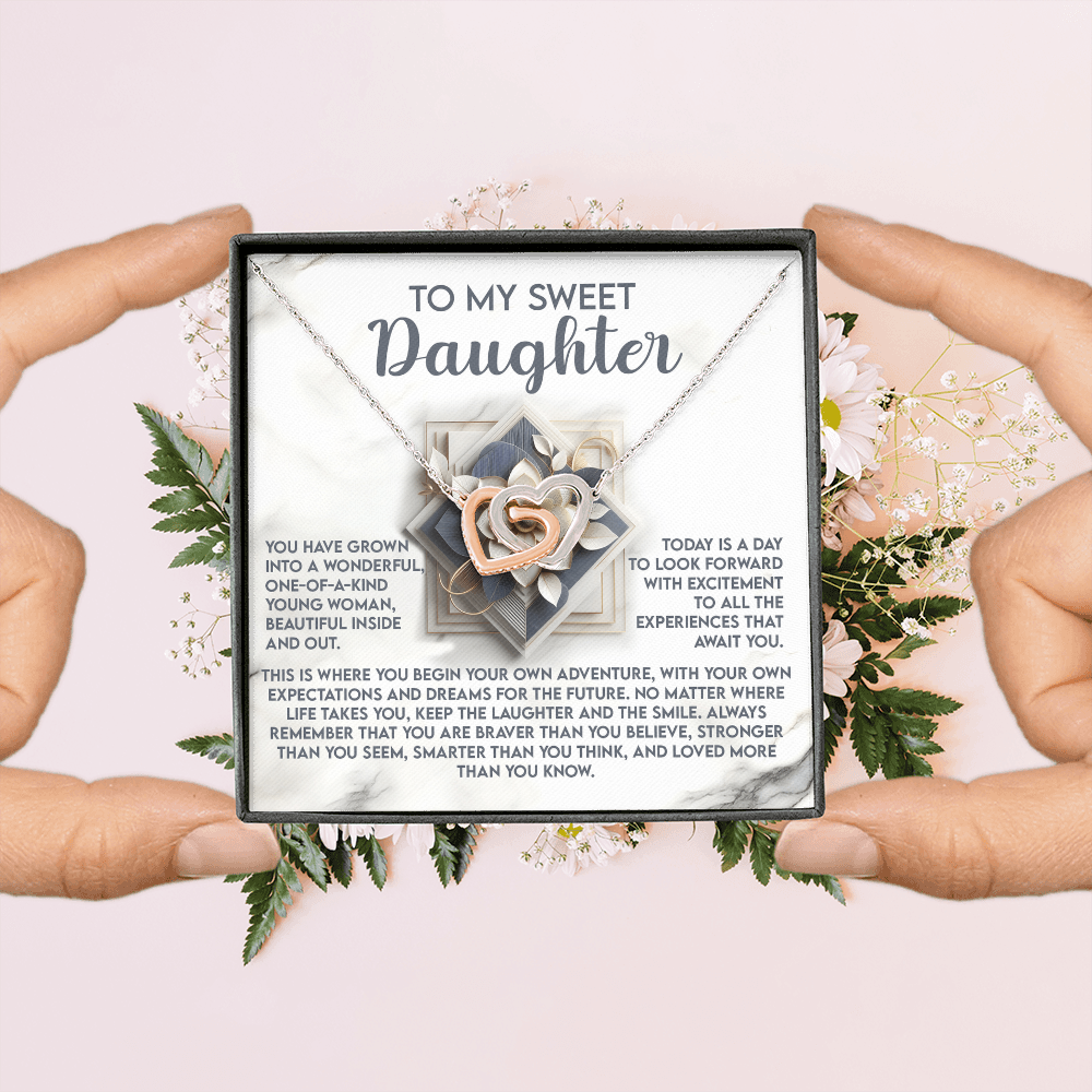 My Sweet Daughter - Grown Into A Wonderful One-Of-A-Kind Young Woman - Beautiful Inside & Out - Begin Your Own Adventure - Your Own Expectations & Dreams For The Future - Interlocking Hearts Necklace IH, DAU0000116IH