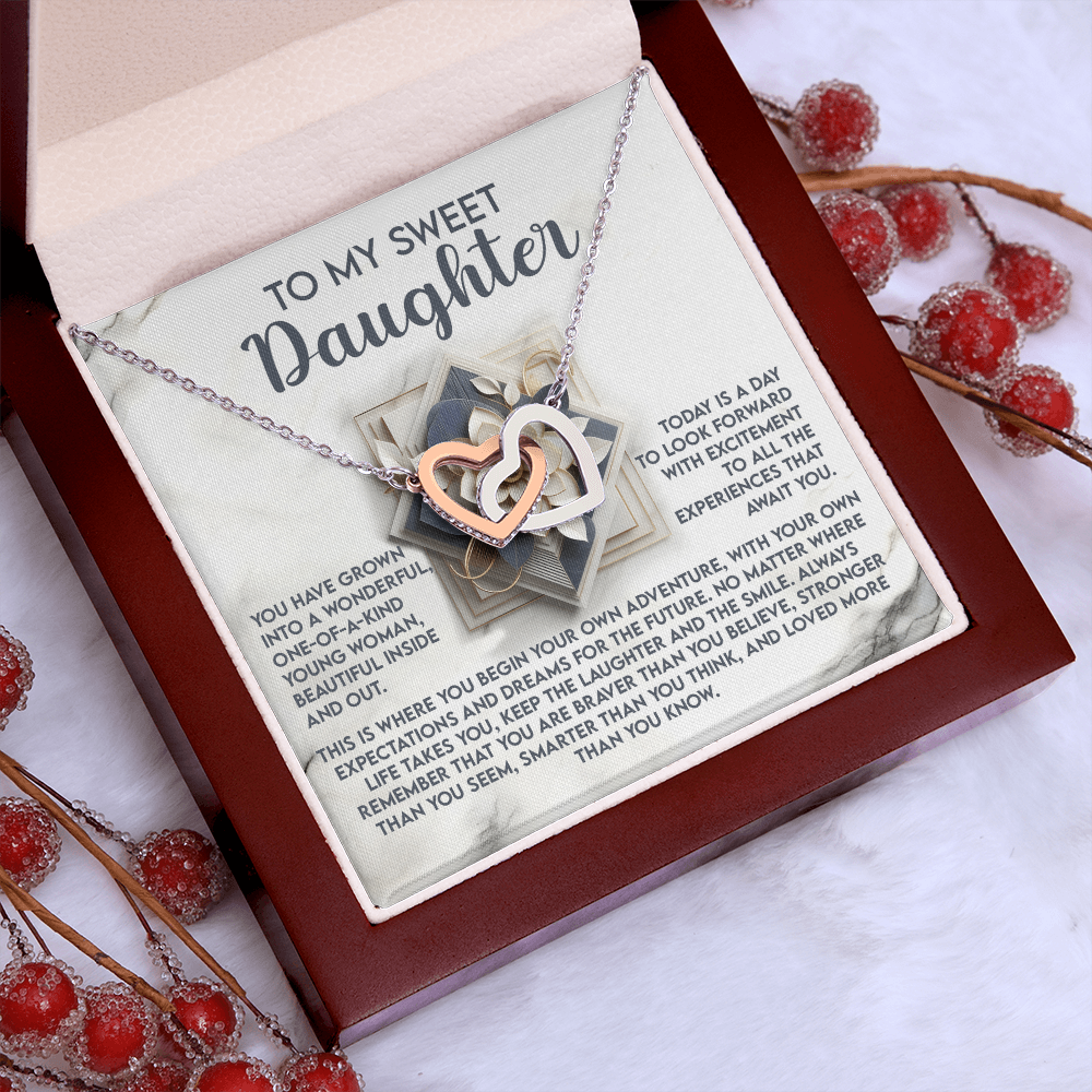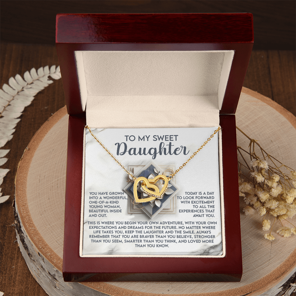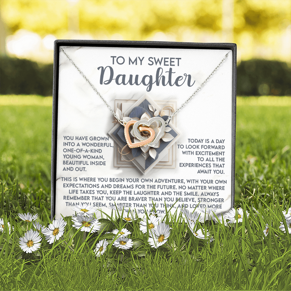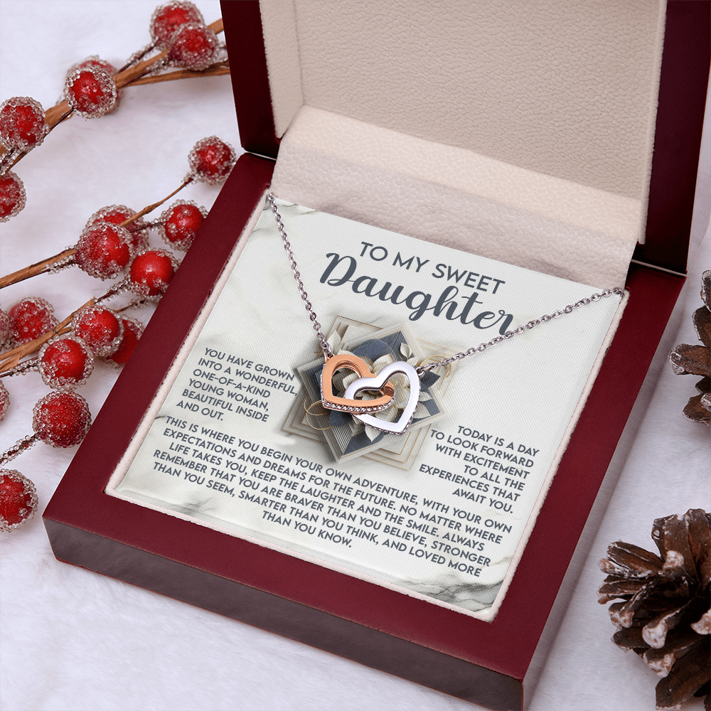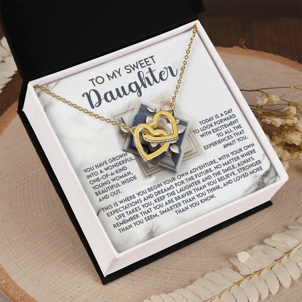 My Sweet Daughter - Grown Into A Wonderful One-Of-A-Kind Young Woman - Beautiful Inside & Out - Begin Your Own Adventure - Your Own Expectations & Dreams For The Future - Interlocking Hearts Necklace IH, DAU0000116IH