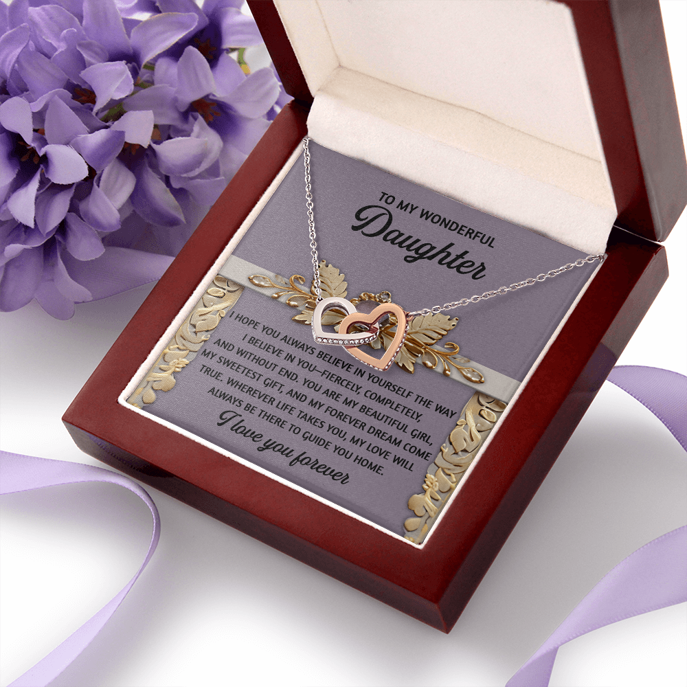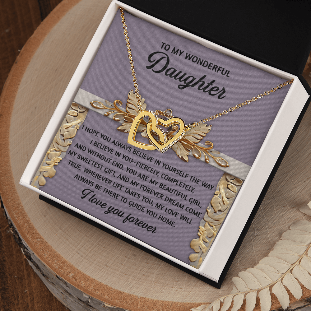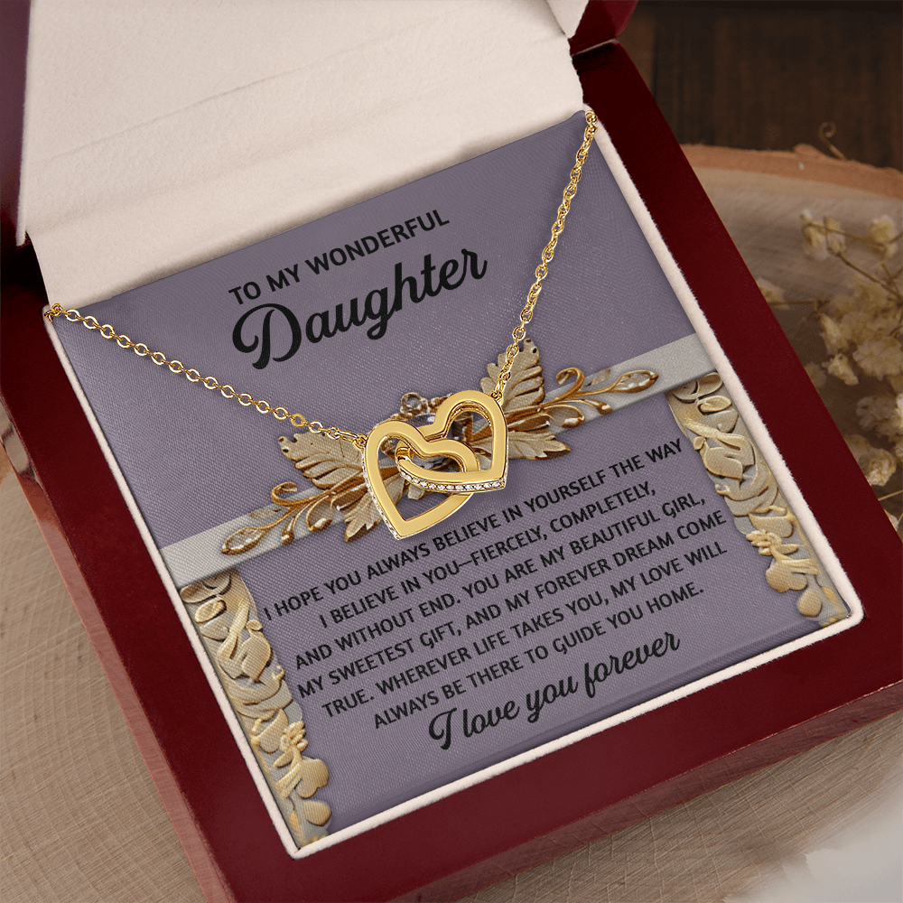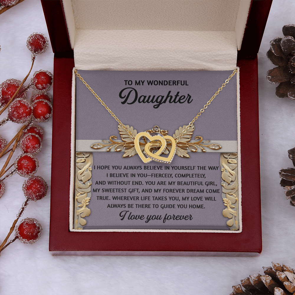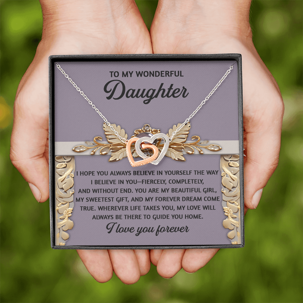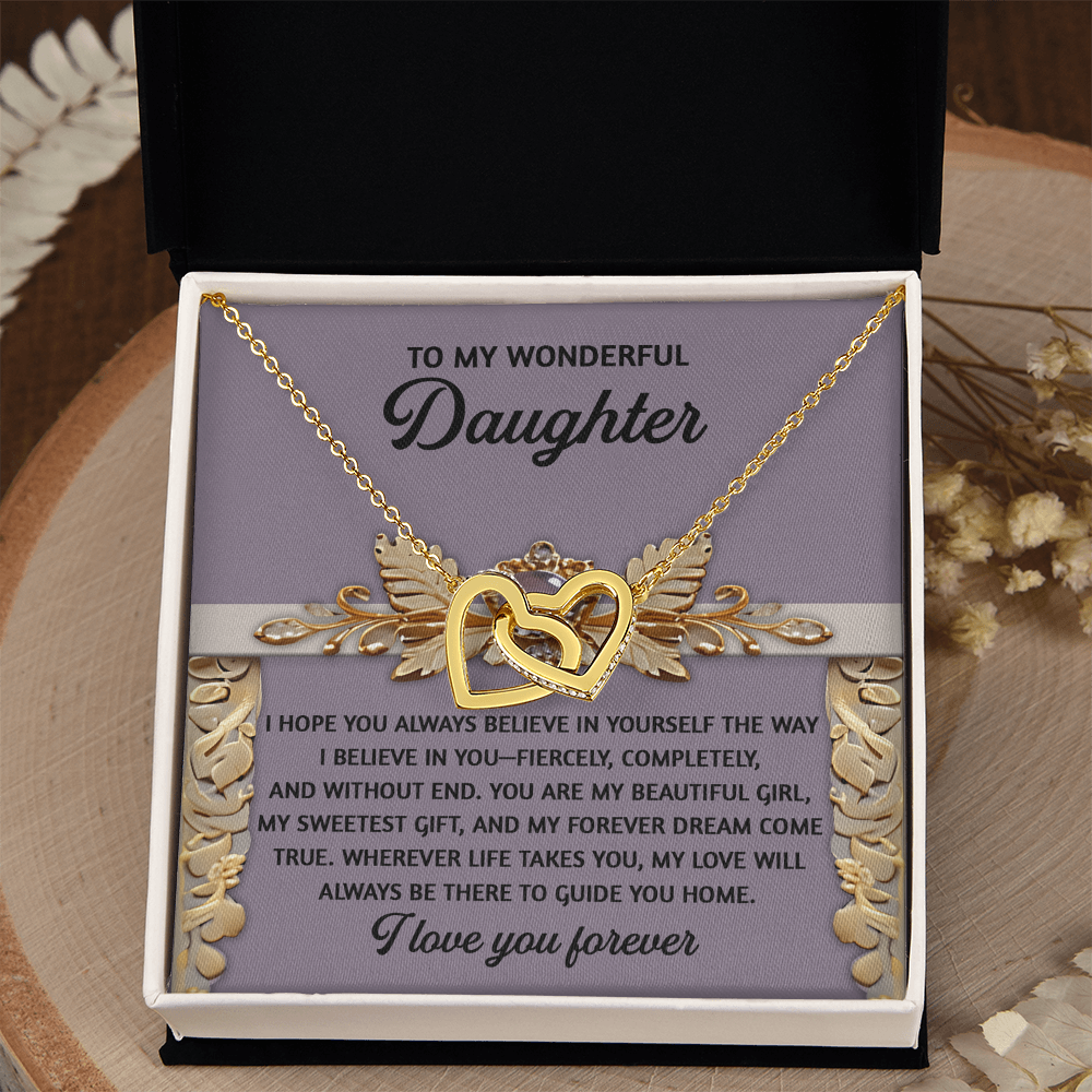 My Wonderful Daughter - Always Believe In Yourself - My Beautiful Girl, My Sweetest Gift & My Forever Dream Come True - My Love Will Always Be There - I Love You Forever - Interlocking Hearts Necklace IH, DAU0000118IH