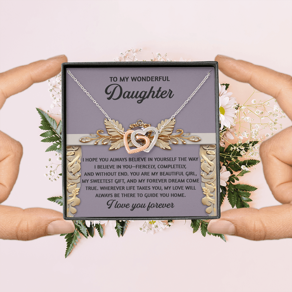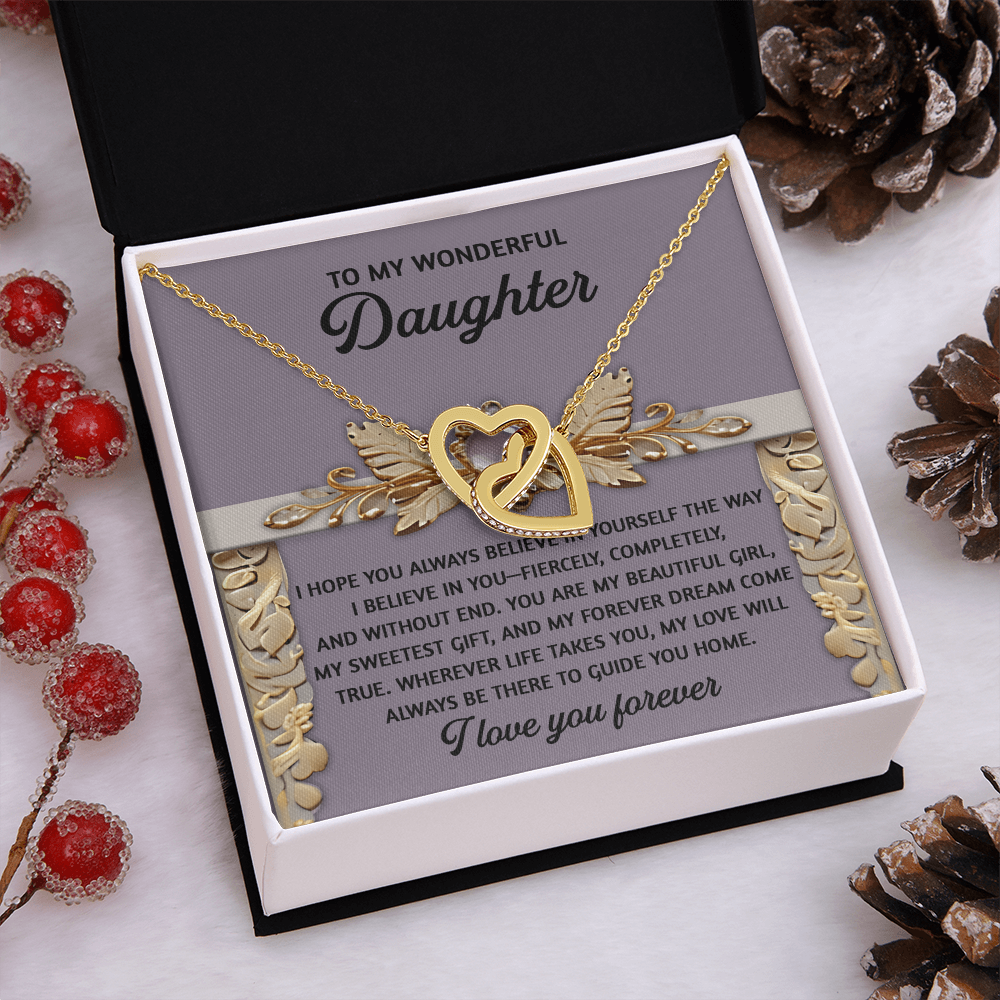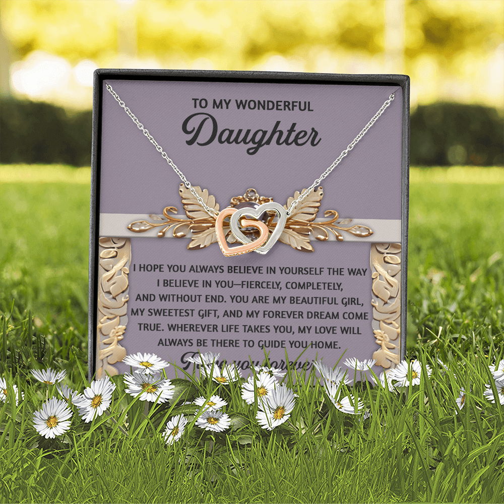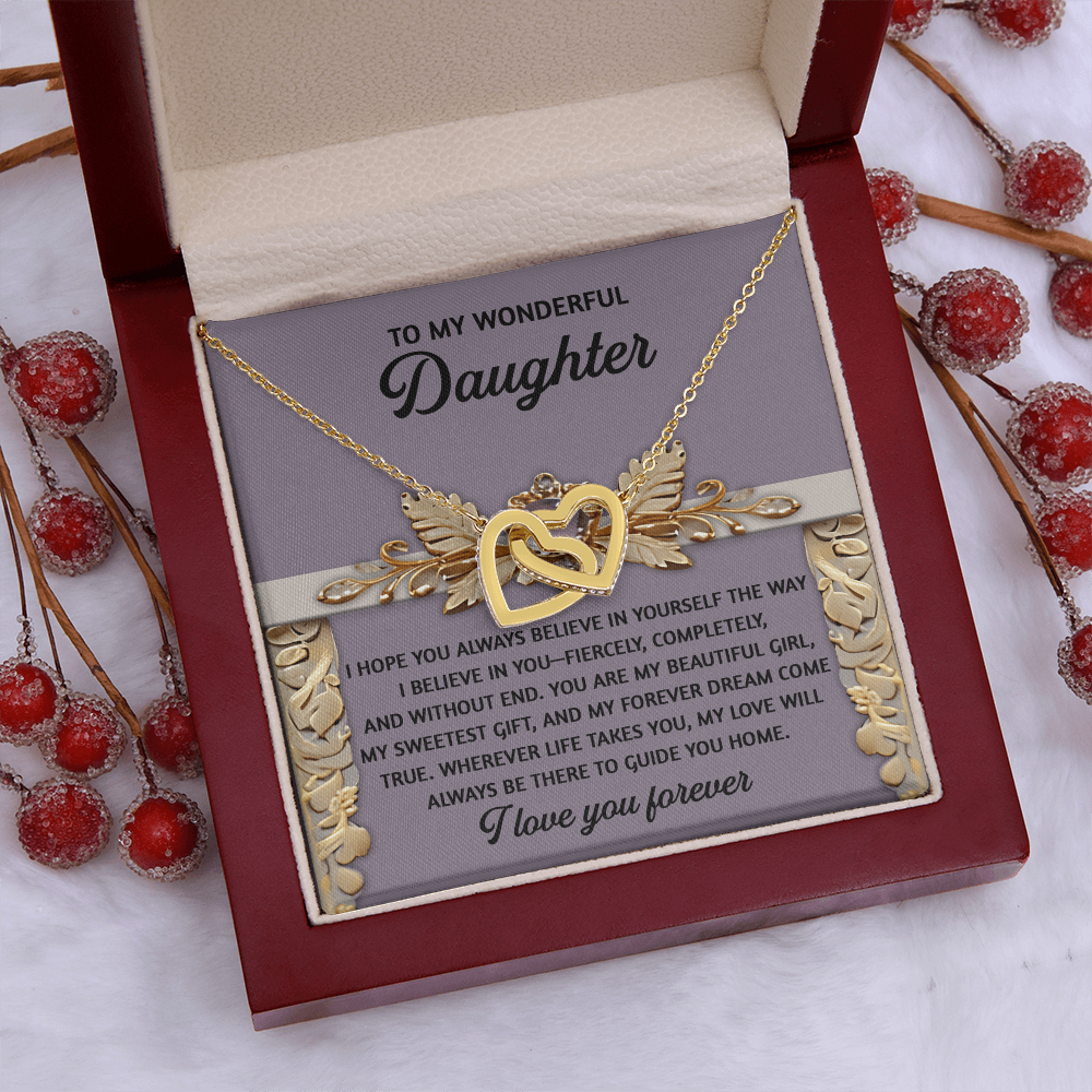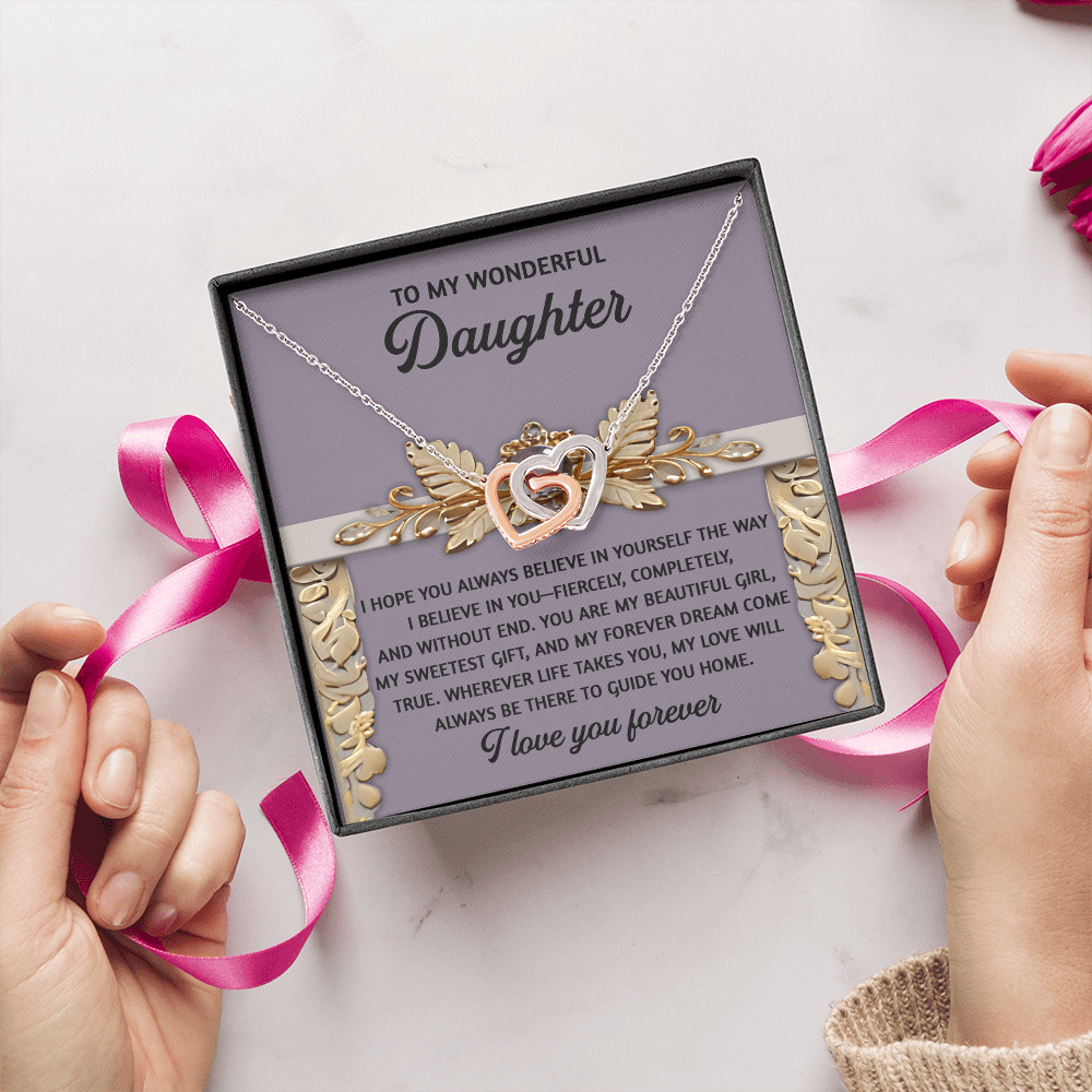 My Wonderful Daughter - Always Believe In Yourself - My Beautiful Girl, My Sweetest Gift & My Forever Dream Come True - My Love Will Always Be There - I Love You Forever - Interlocking Hearts Necklace IH, DAU0000118IH