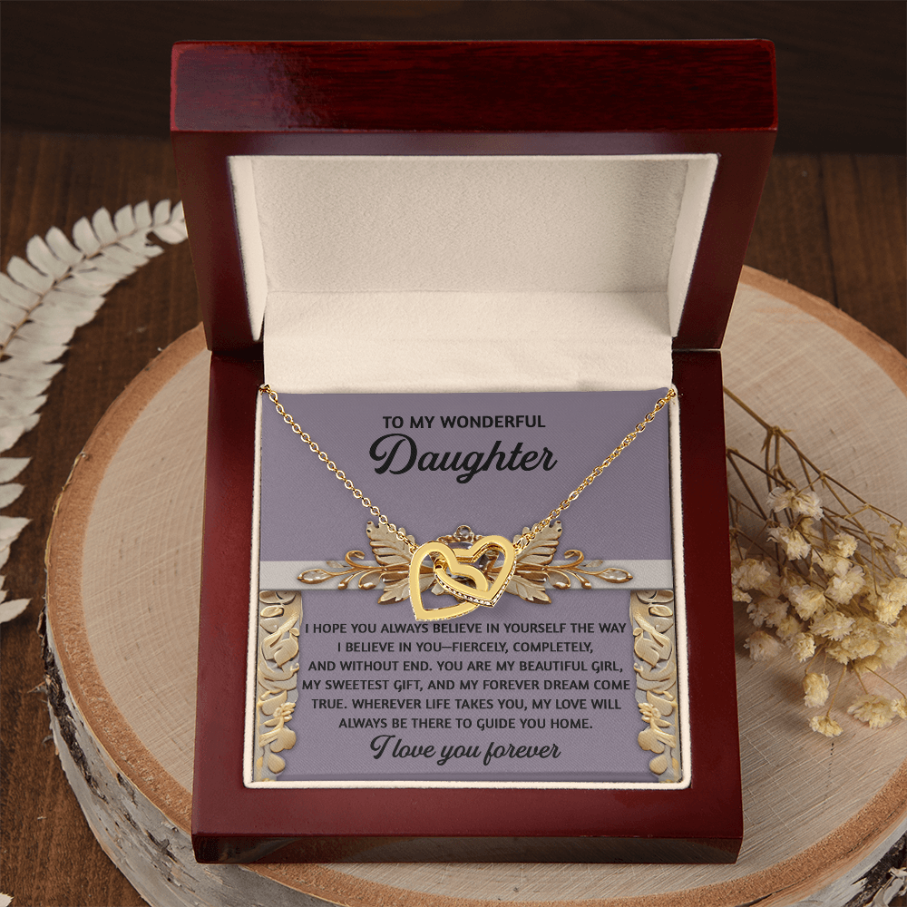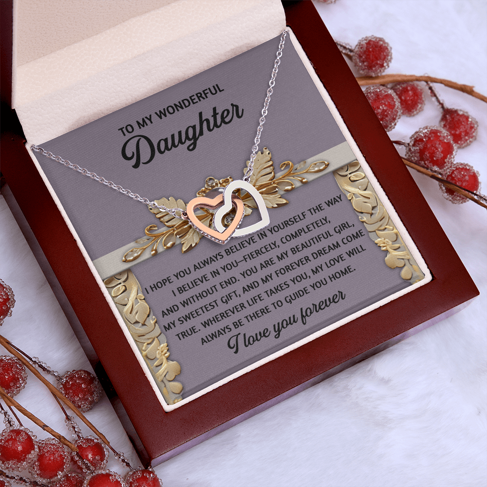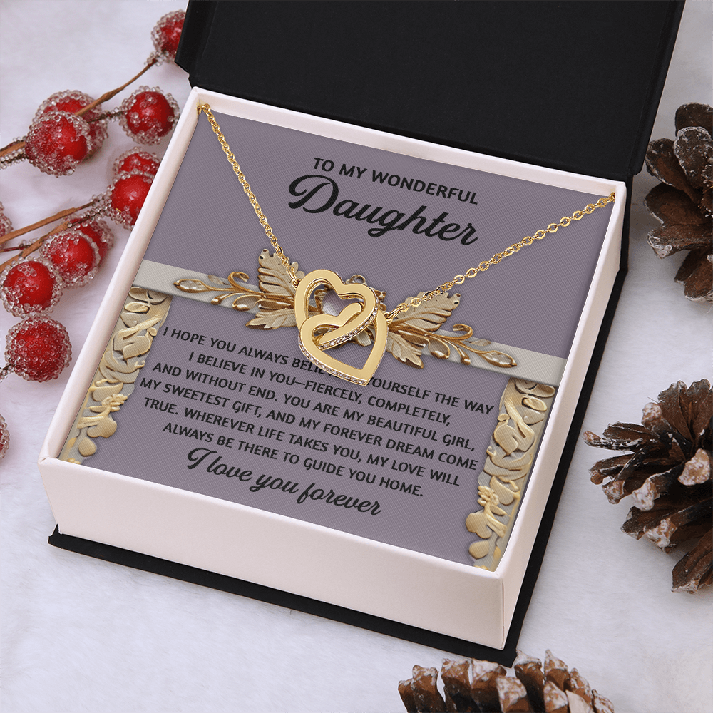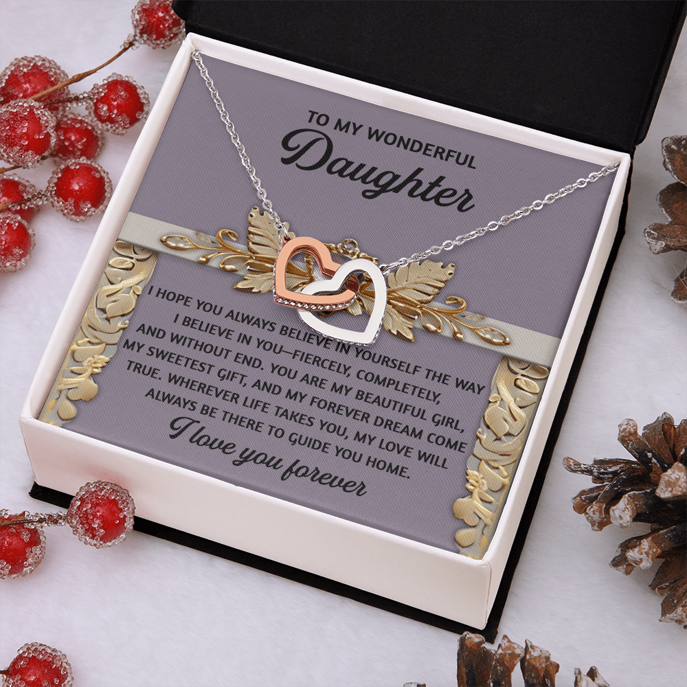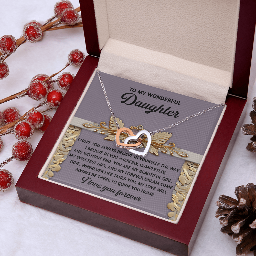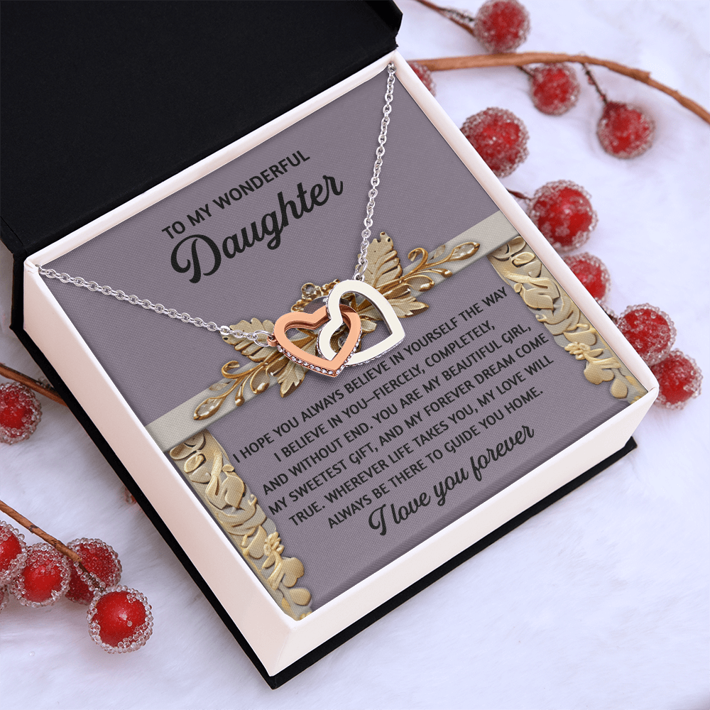 My Wonderful Daughter - Always Believe In Yourself - My Beautiful Girl, My Sweetest Gift & My Forever Dream Come True - My Love Will Always Be There - I Love You Forever - Interlocking Hearts Necklace IH, DAU0000118IH