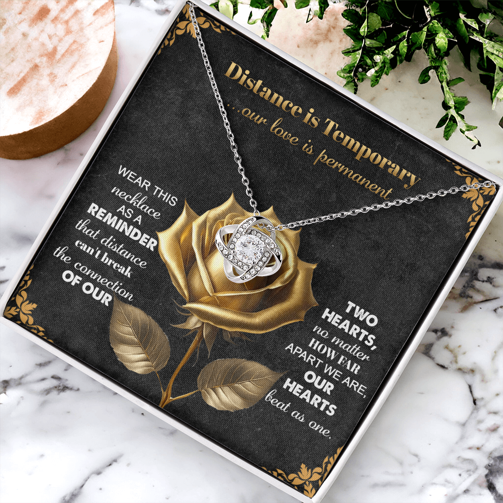 Our Love Is Permanent - Distance Can't Break The Connection Of Our Two Hearts - No Matter How Far Apart We Are, Our Hearts Beat As one - Love Knot Necklace LN, SMT0000099LN