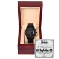 A handsome gift that can withstand constant use, this Black Chronograph Watch is perfect for all the special men in your life. A thoughtful present to your groomsmen, an anniversary memento, or a long-lasting keepsake for Father’s Day - it's a versatile piece sure to warm hearts and create smiles. Featuring a three-dial face, calendar function, and luxury pointer in a water-resistant and scratch-proof vessel.