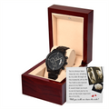 A handsome gift that can withstand constant use, this Black Chronograph Watch is perfect for all the special men in your life. A thoughtful present to your groomsmen, an anniversary memento, or a long-lasting keepsake for Father’s Day - it's a versatile piece sure to warm hearts and create smiles. Featuring a three-dial face, calendar function, and luxury pointer in a water-resistant and scratch-proof vessel.