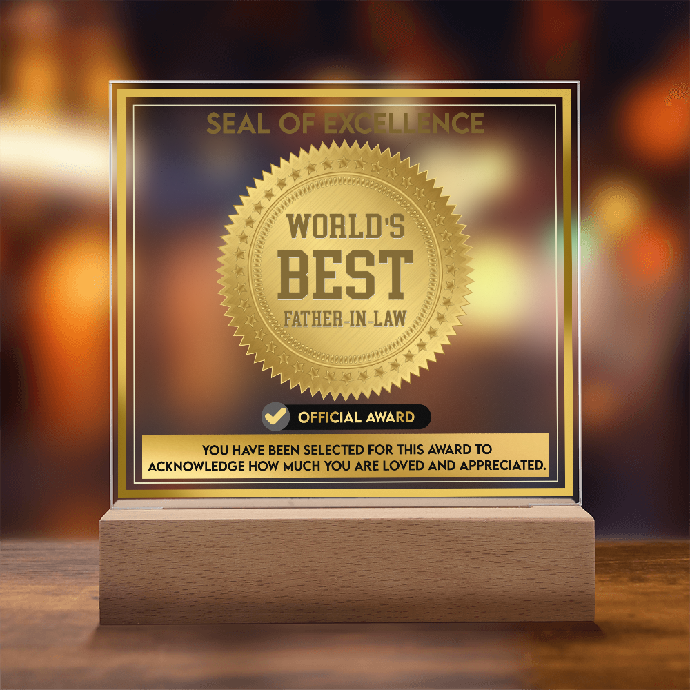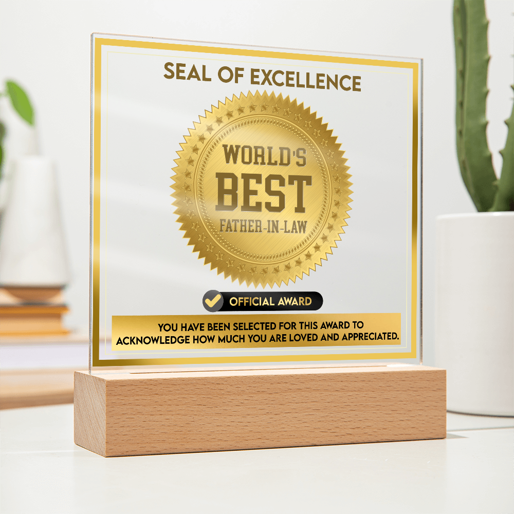 World's Best Father-In-Law - Seal Of Excellence - To Acknowledge How Much You Are Loved & Appreciated - Acrylic Square Plaque ASP, DAD0000054ASP