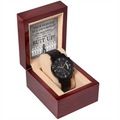 A handsome gift that can withstand constant use, this Black Chronograph Watch is perfect for all the special men in your life. A thoughtful present to your groomsmen, an anniversary memento, or a long-lasting keepsake for Father’s Day - it's a versatile piece sure to warm hearts and create smiles. Featuring a three-dial face, calendar function, and luxury pointer in a water-resistant and scratch-proof vessel.